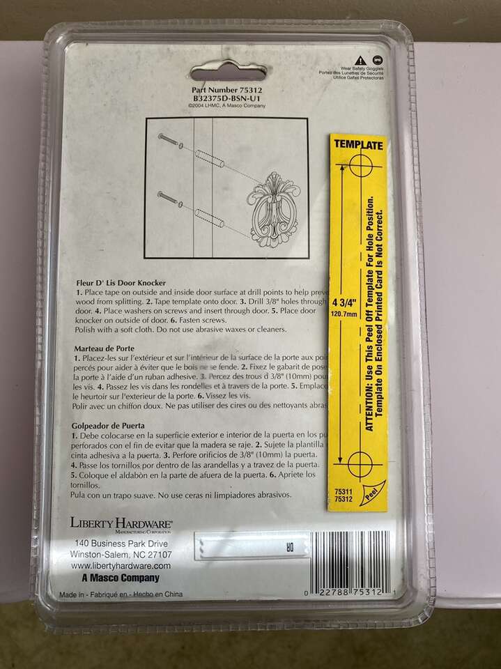 New- Brainerd Fleur D' Lis 6x5 Door Knocker in Brushed Satin Nickel. 2004 New Liberty Hardware in sealed package.