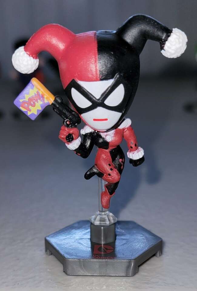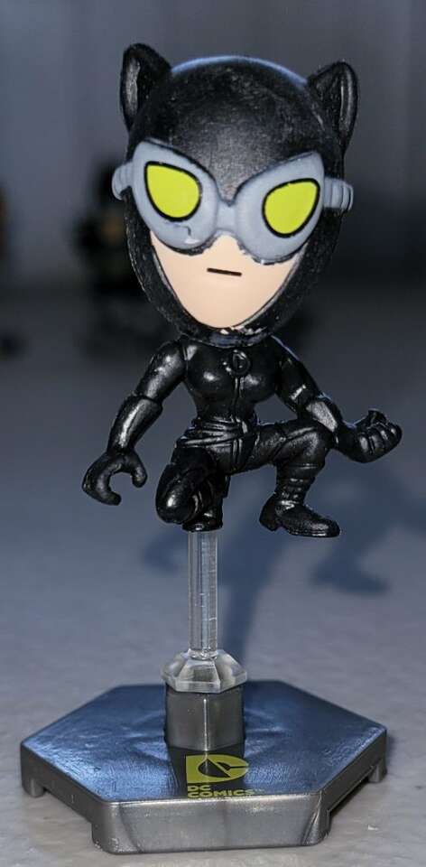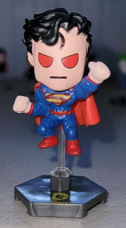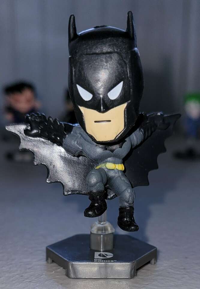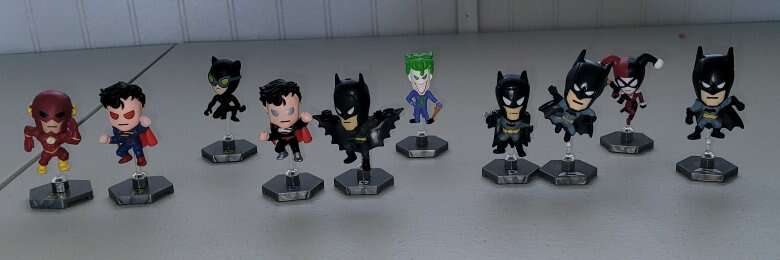Superman, black suit silver eyes - $4 Batman with cape out - $3 Harley Quinn - $3 Superman, red eyes - $2 Flash - $2 Batman with bat star - $2 Joker - $2 Catwoman - $2