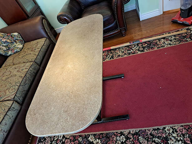 Unique style table. Has two heights. 28 1/2" high normal setting and 13" high for the low setting.