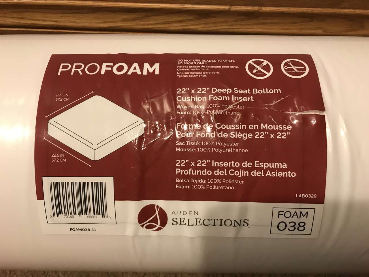 Arden Profoam 22”x22”x4.5” Deep Seat Bottom Cushion Foam Insert, New.