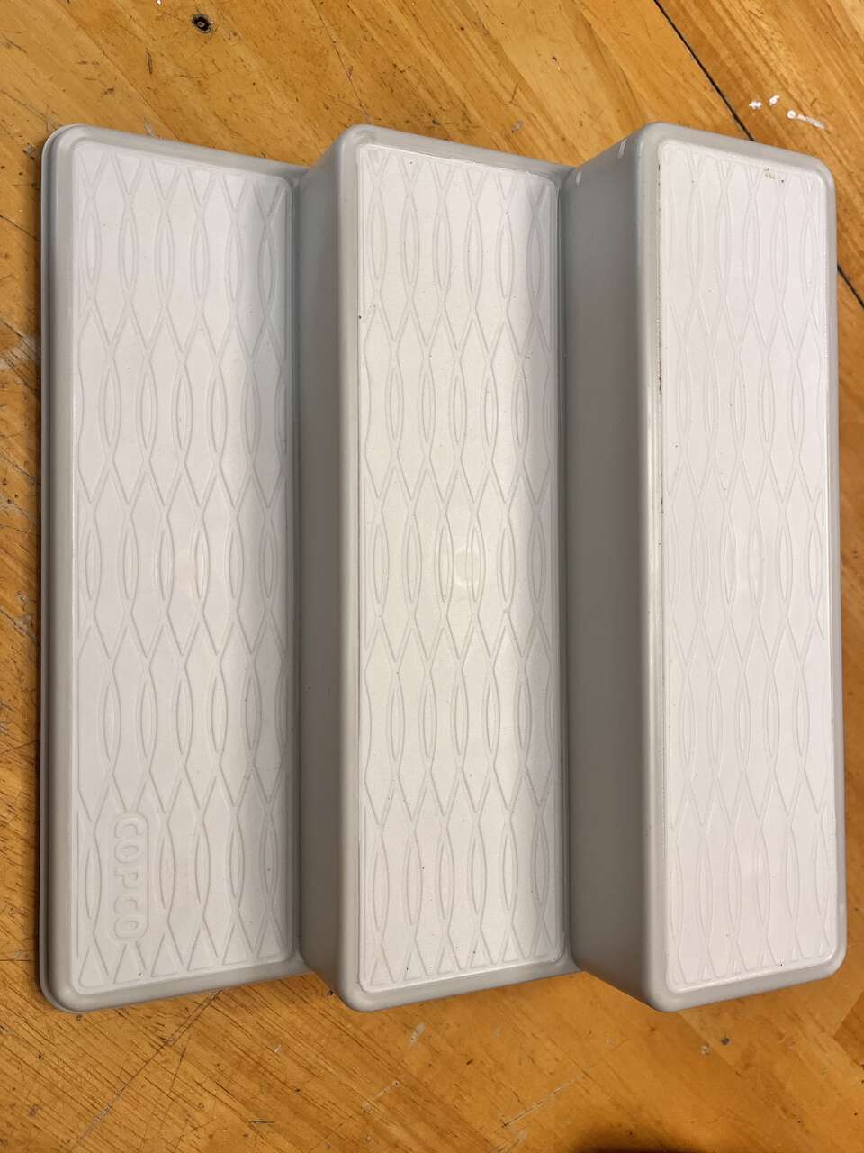 I have 3 non skid shelf organizers. They are great for organizing spices Etc. 2 new 1 like new 1- sized 15x9x3 2-sized 10x9x3 A 2pk of the smaller size on Amazon selling for $19-22 Take all 3 for $20