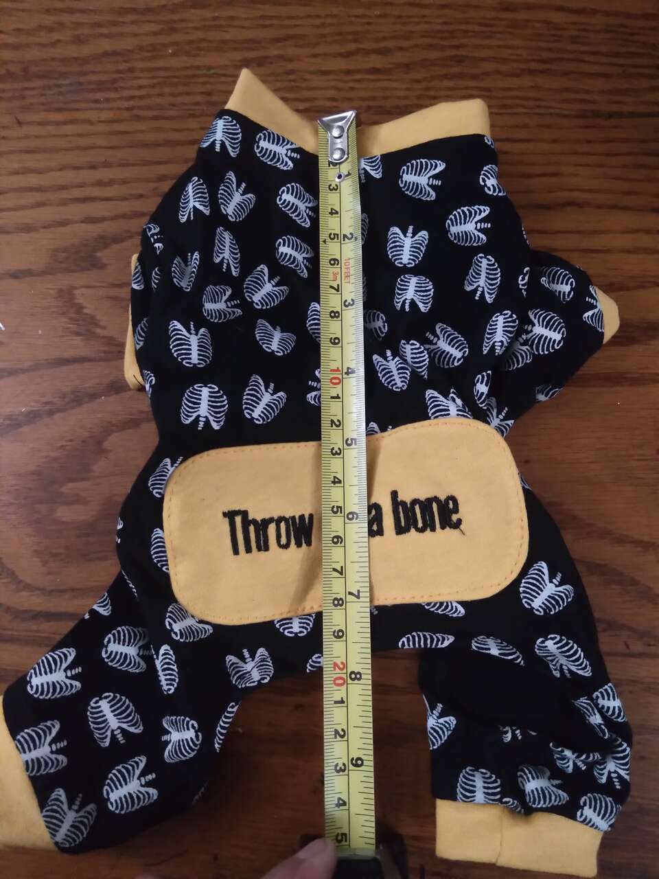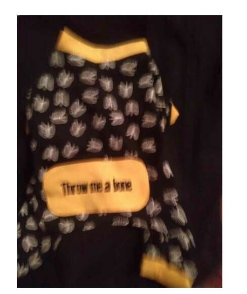 Ribcage print back says throw me a bone pick up at my place