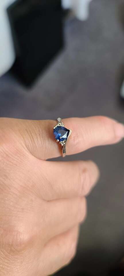 Heart Solid White Gold Ring With Blue Sapphire, 10K size 7.5-8 Sell for $299.00. please call 801-205-3309. ro 385-887-4520 or text.