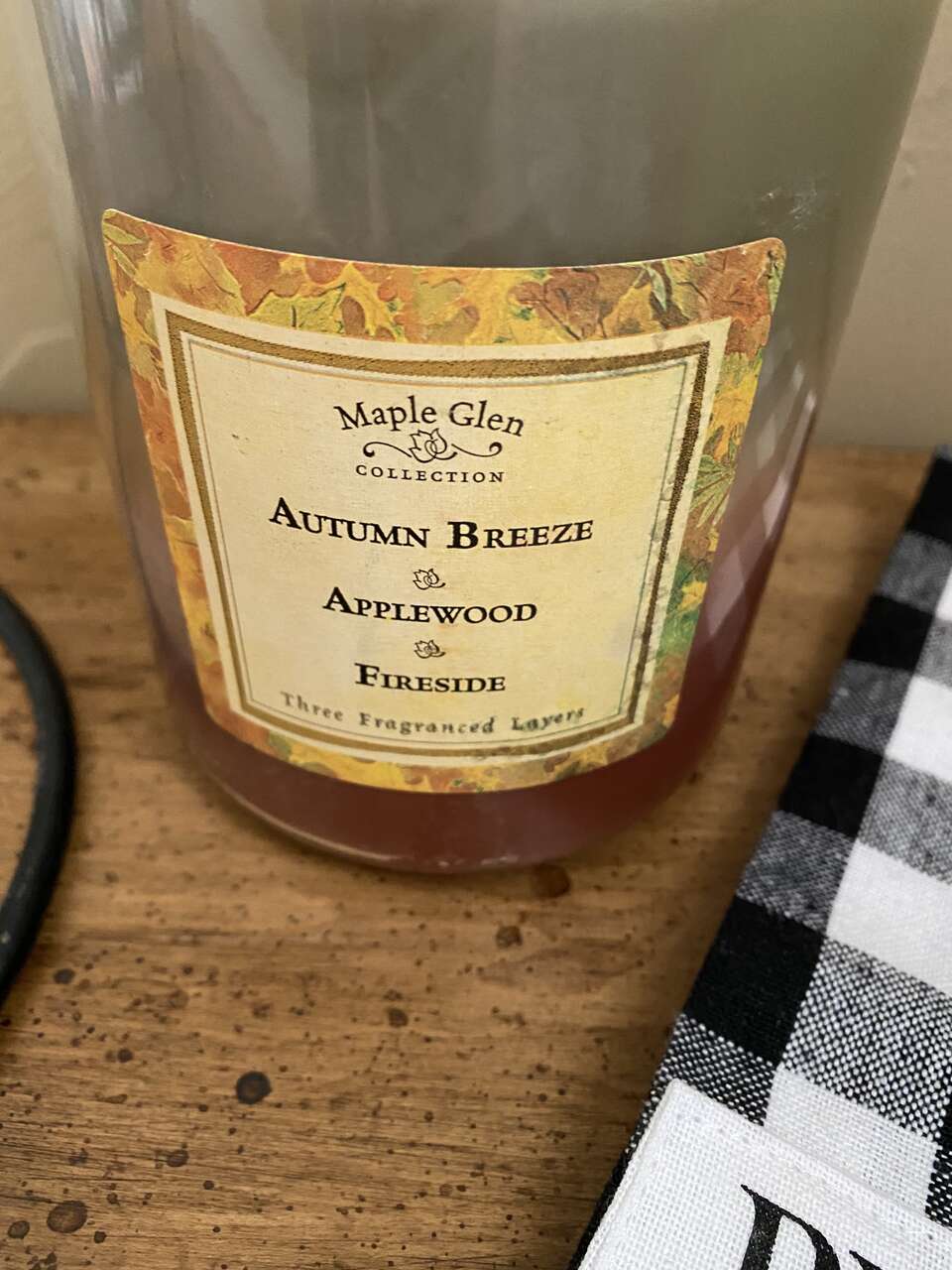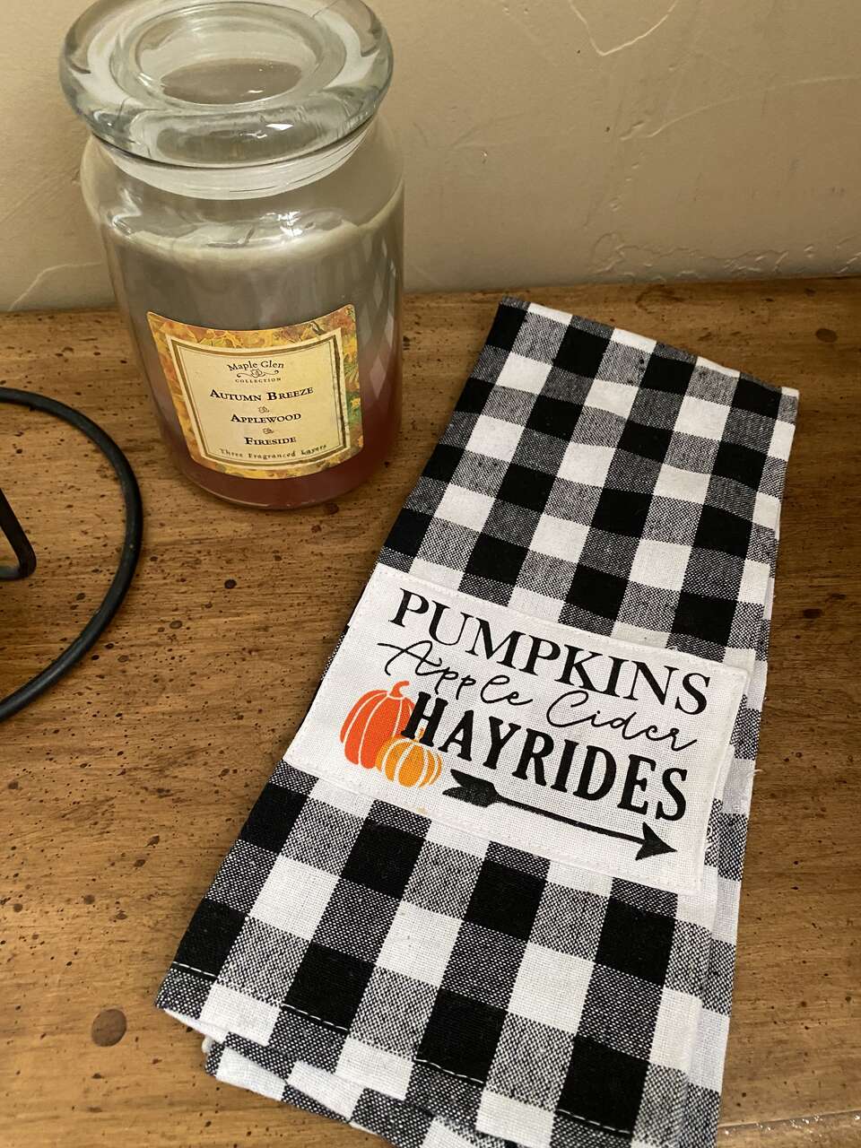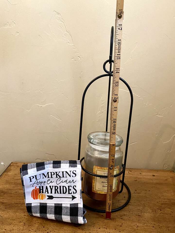 NEW Large 17” Metal Hanging Candle Holder with a Beautiful Towel and A Triple Scented Candle - See Photos