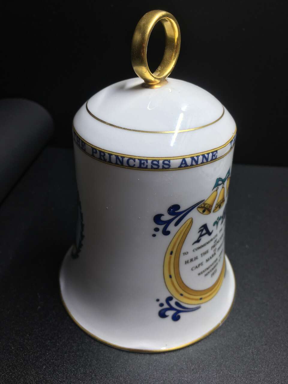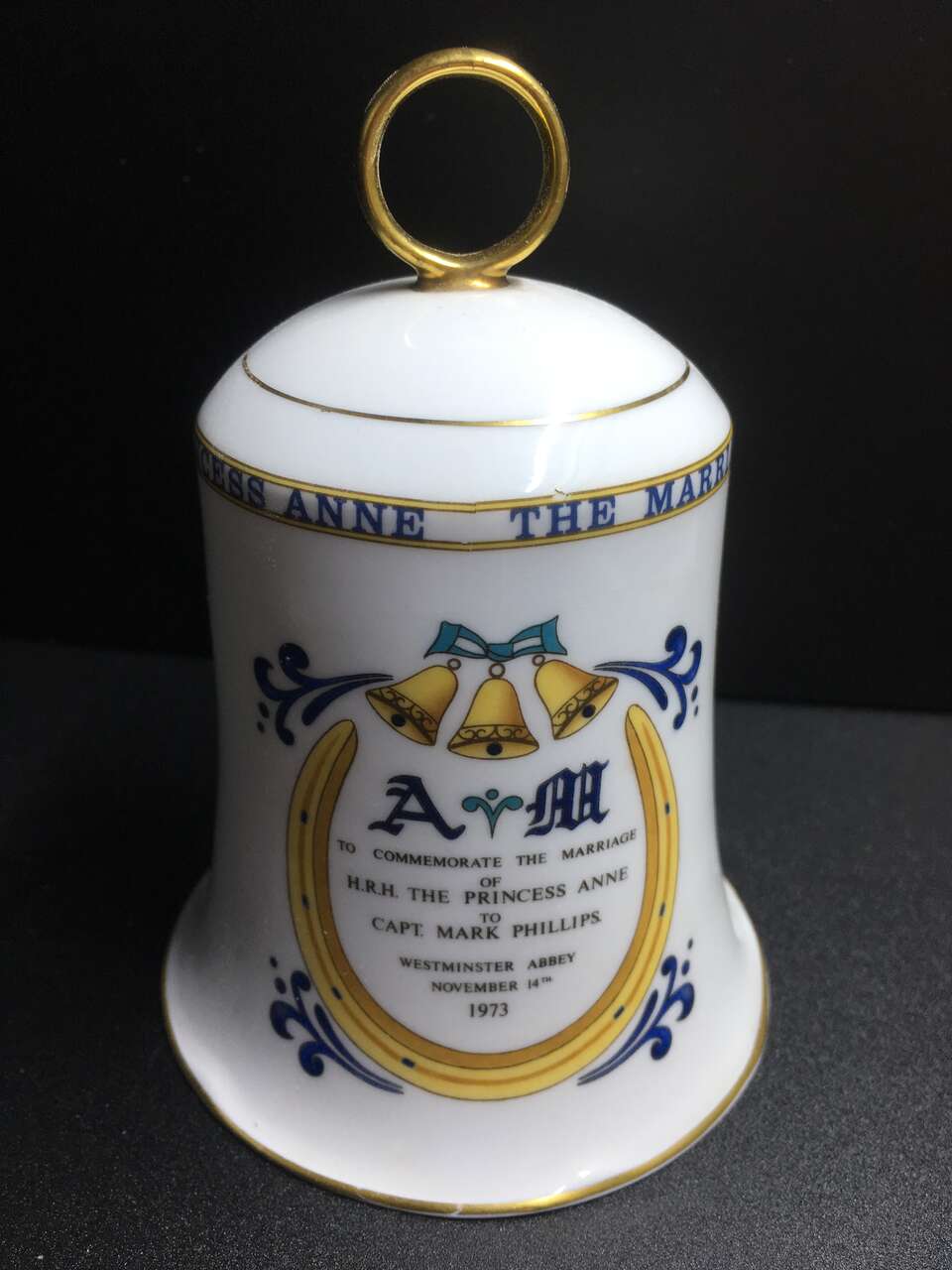 VenmoThis is an Aynsley bone china bell to commemorate the marriage of Princess Anne and Capt. Mark Phillips in 1973. It is in excellent condition with no chips or cracks. Please view the pictures as they are part of the description.