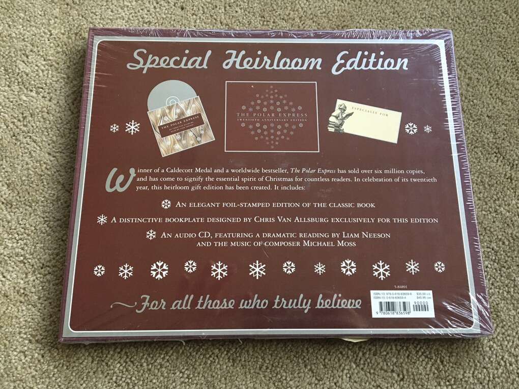 NEW (sealed in plastic) The Polar Express, by Chris Van Allsburg. Caldecott Medal medal winner. Collector’s edition full-cloth storybook, audio CD read by Liam Neeson, and exclusive bookplate. New, unopened condition. Text only. Cash or Venmo.