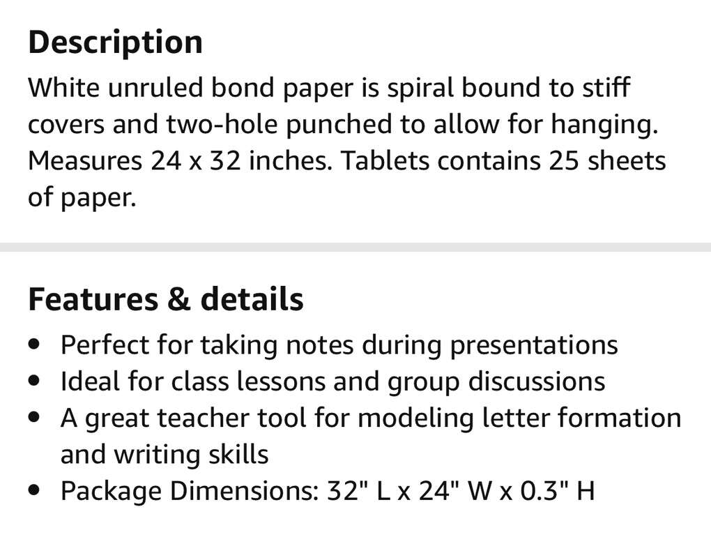 Description- PACK OF 8 PADS of 24” x 32” unruled pad of flip chart paper (25 sheets or pad). See photos for more product information and specifications.