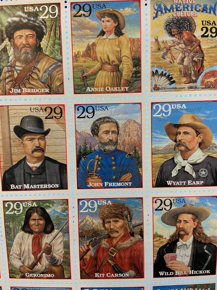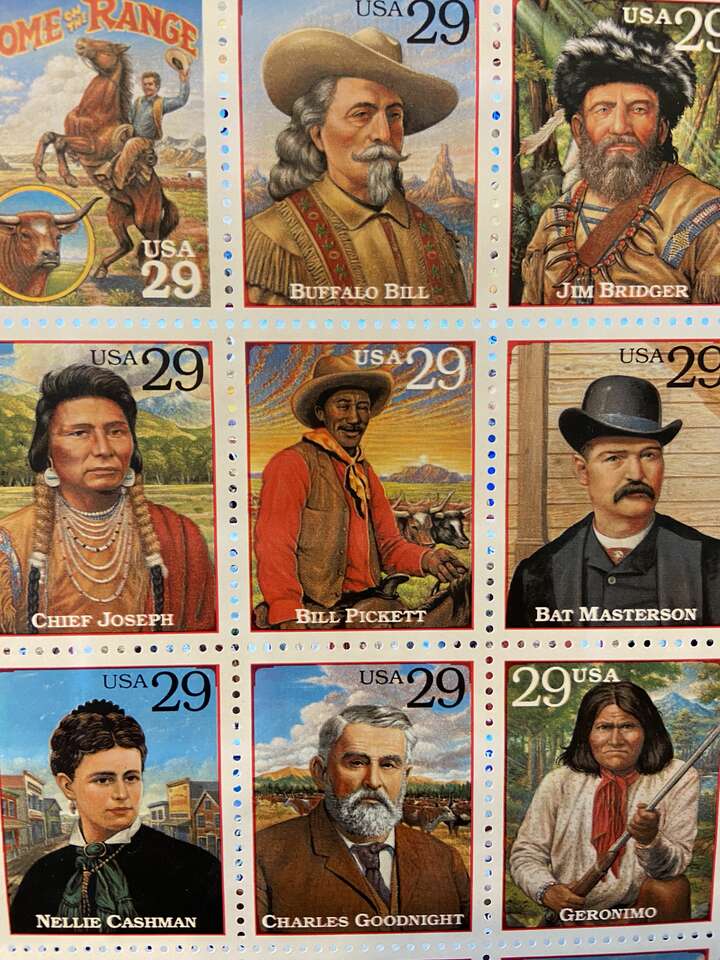 VenmoThis colorful sheet of twenty different 29-cent stamps is uncirculated and still intact. Issued in 1994, these beautiful stamps honor a wide variety of historic people connected to the American West. Celebrated are famous pioneers, Native Americans, cowboys and performers. The USPS mistakenly used a photograph of Bill Pickett's brother, Ben Pickett, as the basis for one portrait. Only a month after the stamp's release, the descendants of the Pickett's informed the USPS of the error. The stamps were recalled and this new version was released with a corrected illustration.