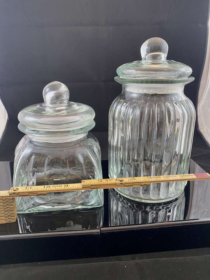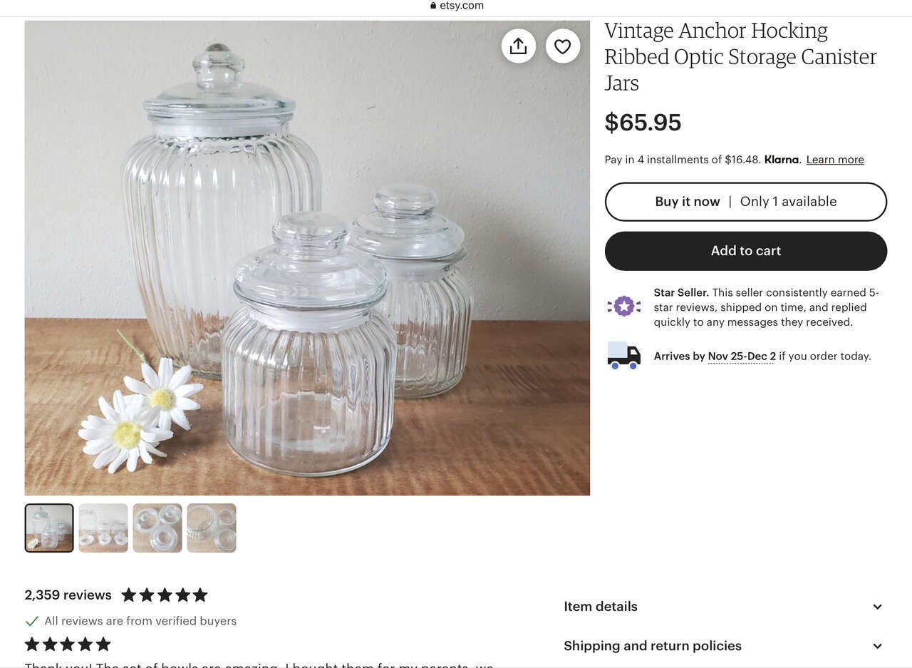 Beautiful Set of TWO Vintage Anchor Hocking Ribbed Optic Glass Jars - Bubble Lids & Seals - See PICS. These sell for $28 Each elsewhere. You get BOTH for $43! The shape of these are very rare.