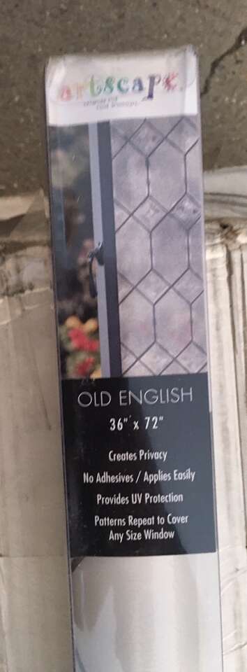 Old English 36-in x 72-in Old English Stained Glass Applique Window Film Materiel vinyl Width 36 in Size 36-in x 72-in Length 6 ft Color off white Design old English Item number 2845681 01-3728 Total available 2 box Each box has 4 count Each box $75