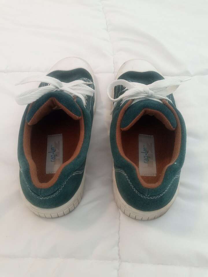 Price Reduced Again These men's 9M rag-Lan nz leather shoes are in great condition, having only been worn two or three times. They have leather uppers; green suede with smooth white toe. The white soles are a little dirty, but there is no visible damage or wear. They are from a smoke-free home. Cash or Venmo only.