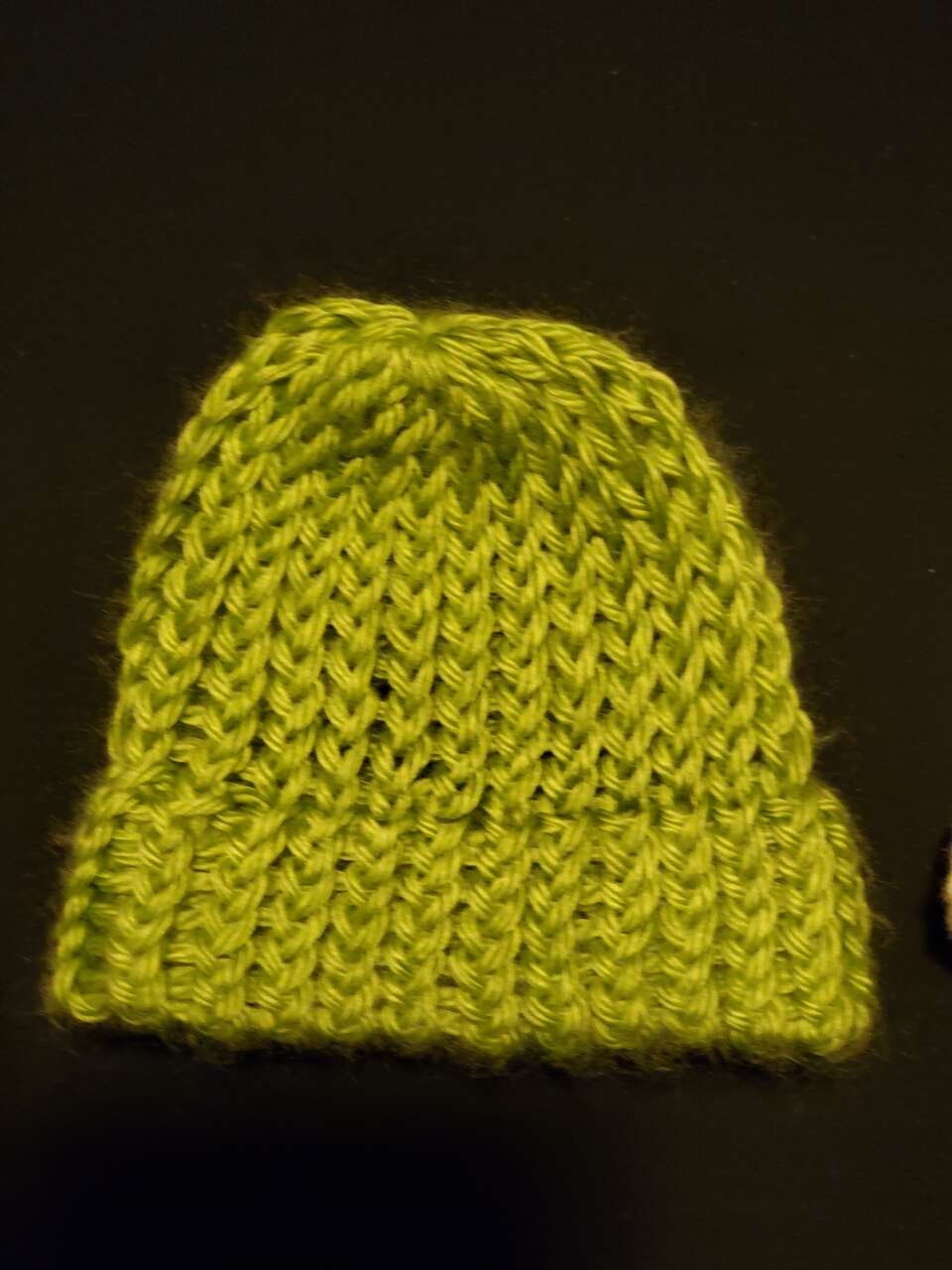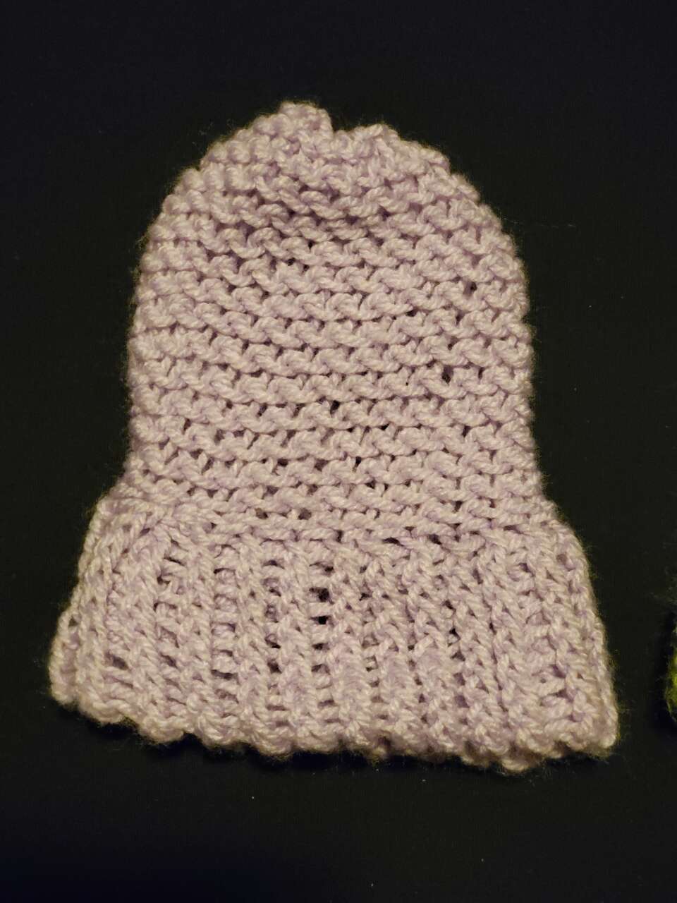 This set of 4 crocheted preemie hats comes with one lavender hat, one lime green hat, one cream hat and one red hat with white trim.