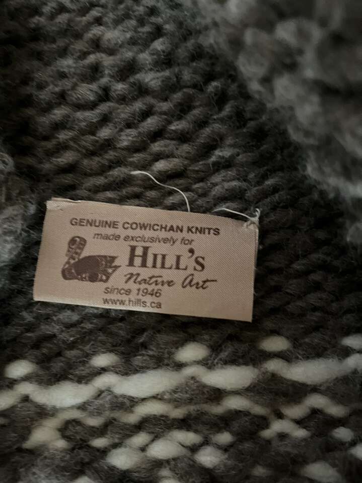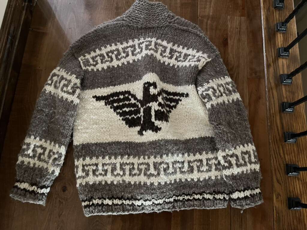 Cowichan Indian Canada Hand Knit Wool Cardigan Eagle Sweater Full Zip Jacket L