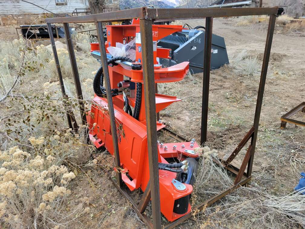 Brand New, never been used, Topcat hydraulic tree sheer, skid steer attachment. Very reasonable delivery available.
