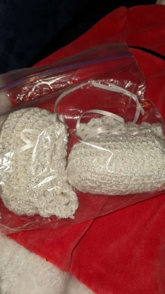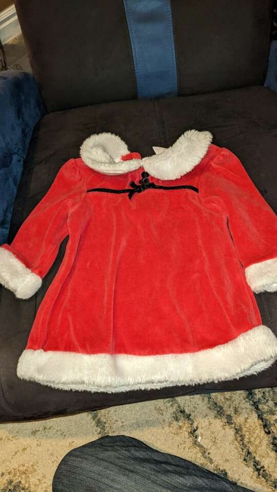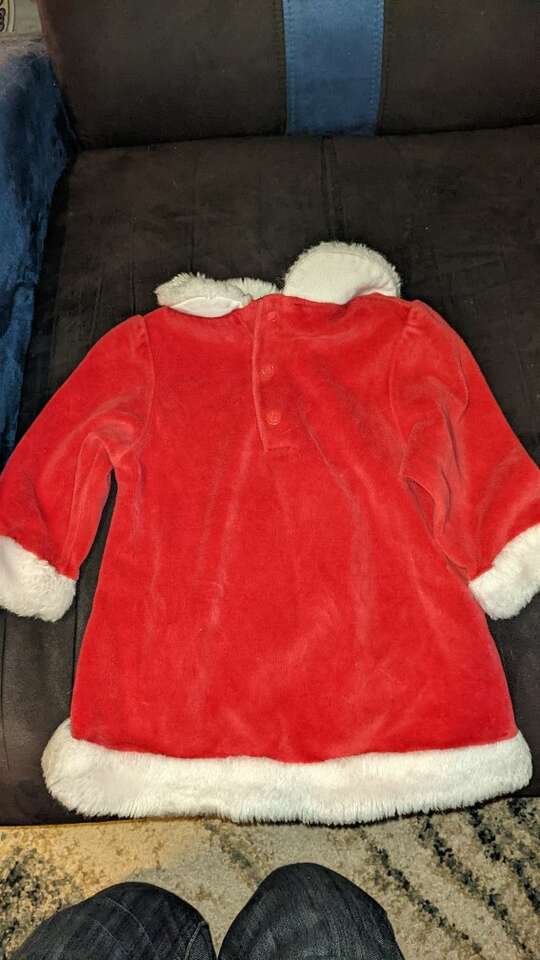 3-6 month baby Christmas dress with brand new mittens and slippers.