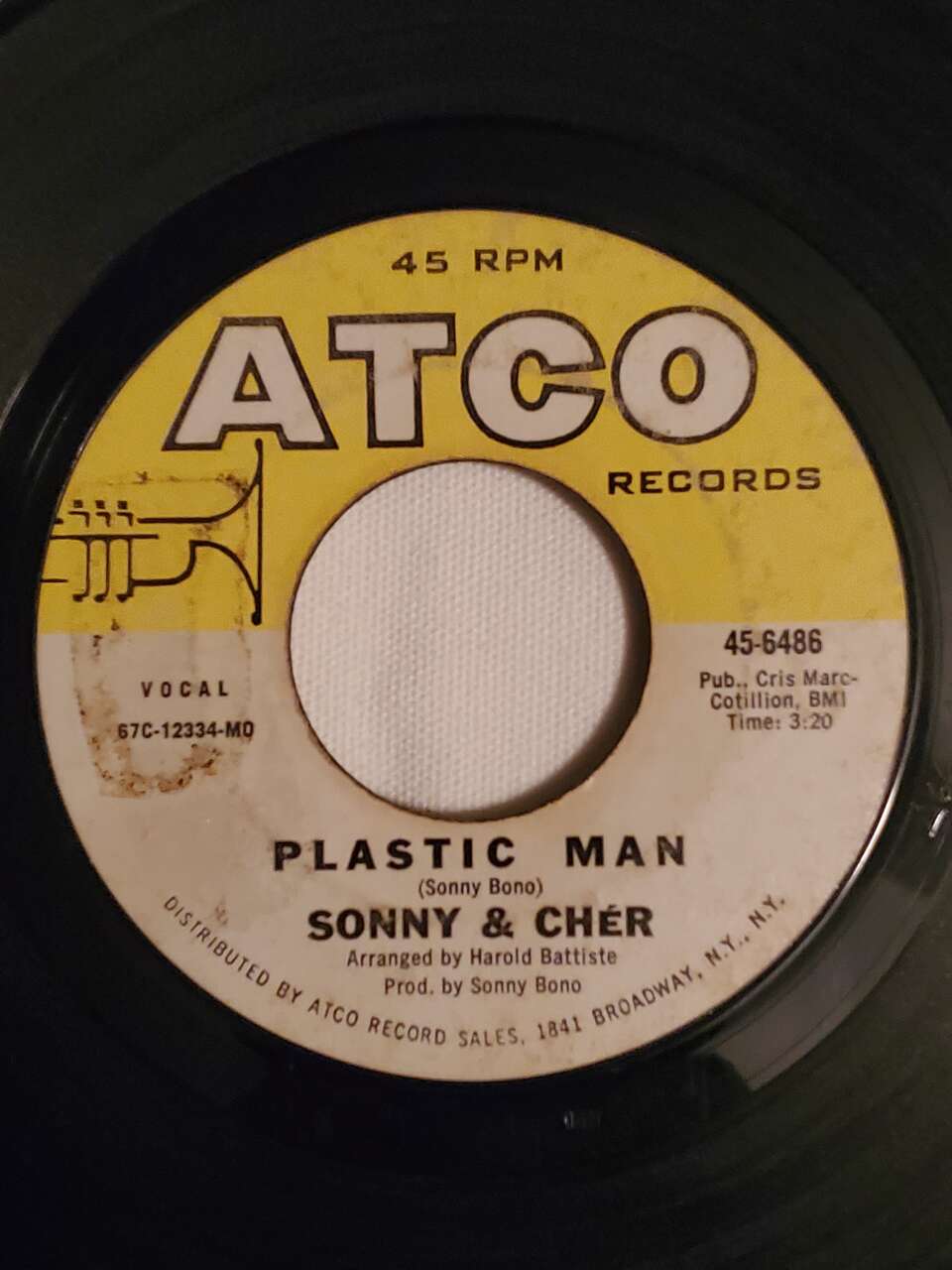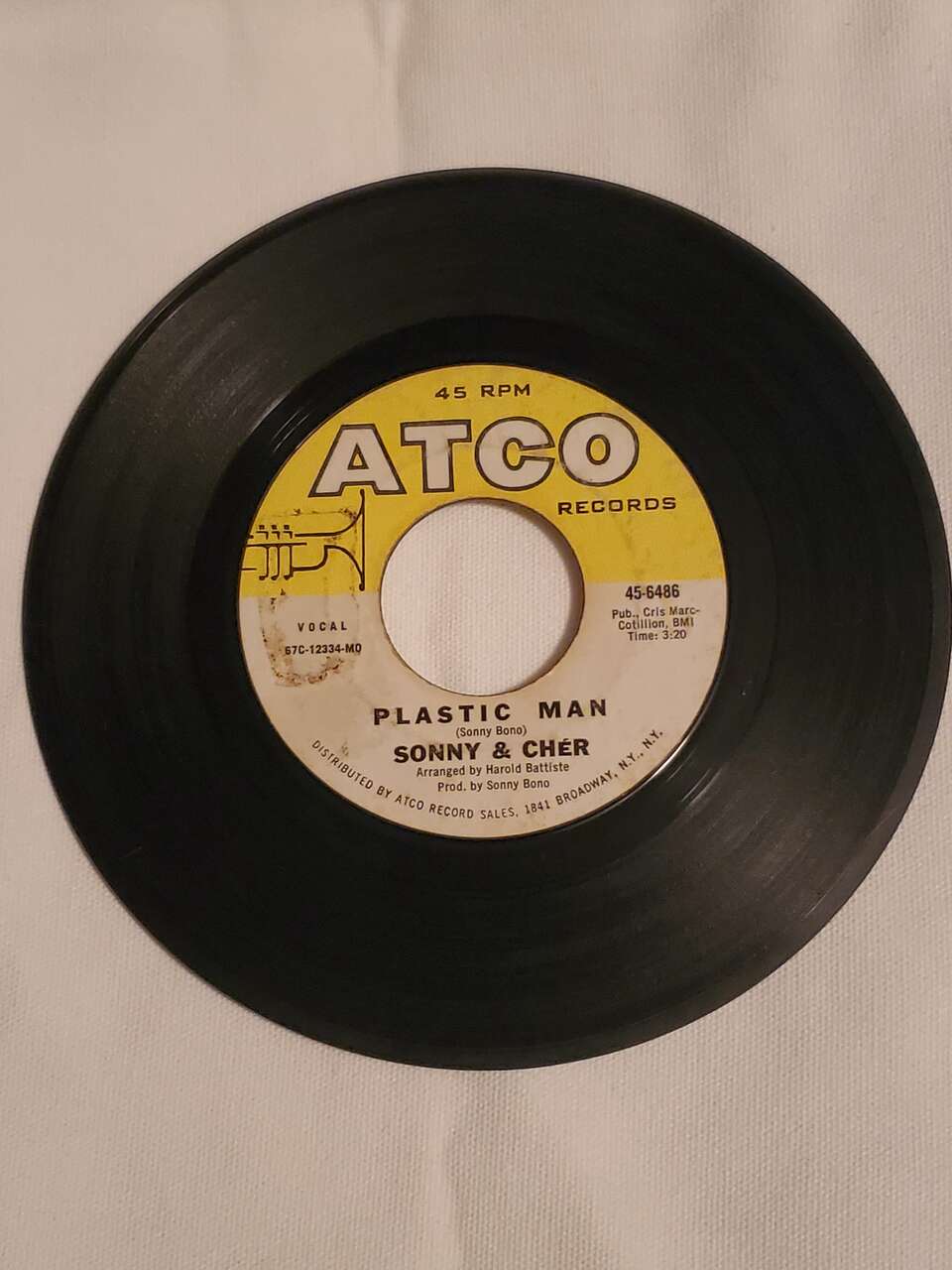 ZelleSonny & Cher-It's The Little Things and Plastice Man 7" Vinyl ATCO Records 45 RPM Vocal 45-6486