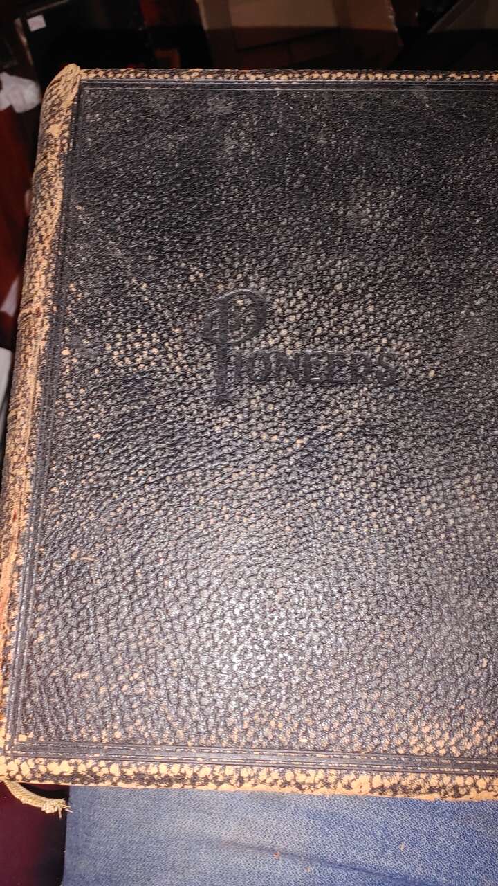 Book is in fair shape most of book is solid there is some seperation at the spine a few pages in front and back does have some repair tape on inside hardback part. Hundreds of photos of pioneers. Very rare book