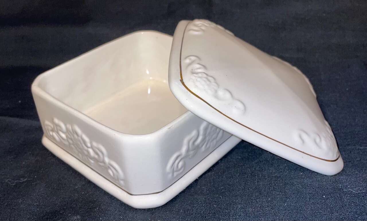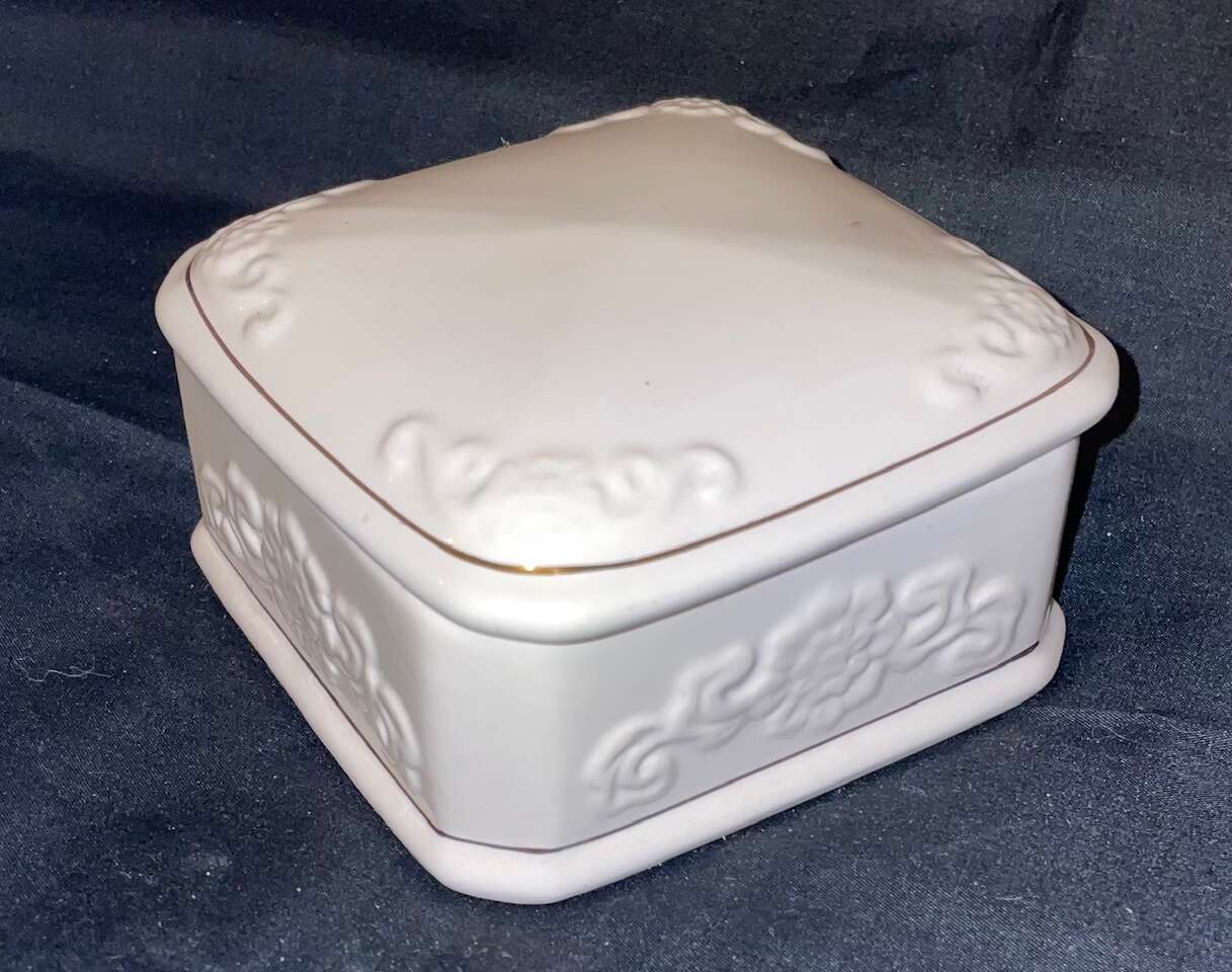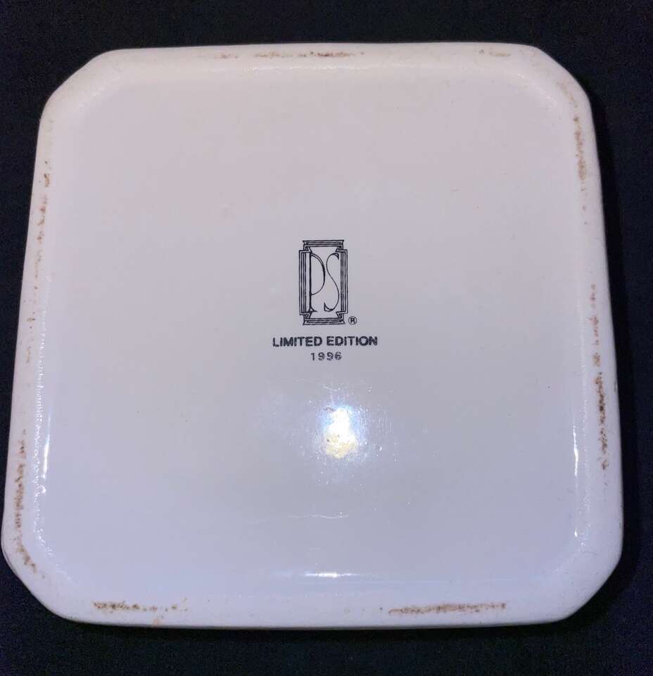 VenmoVintage Paul Sebastian PS 1996, Limited Edition trinket vanity box, white with gold trim. This measures about 4" x 4". There are some slight marks on the bottom due to sitting on a shelf. Other than that it is in excellent condition. Please view the pictures as they are part of the description.