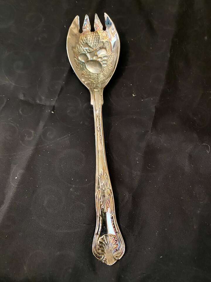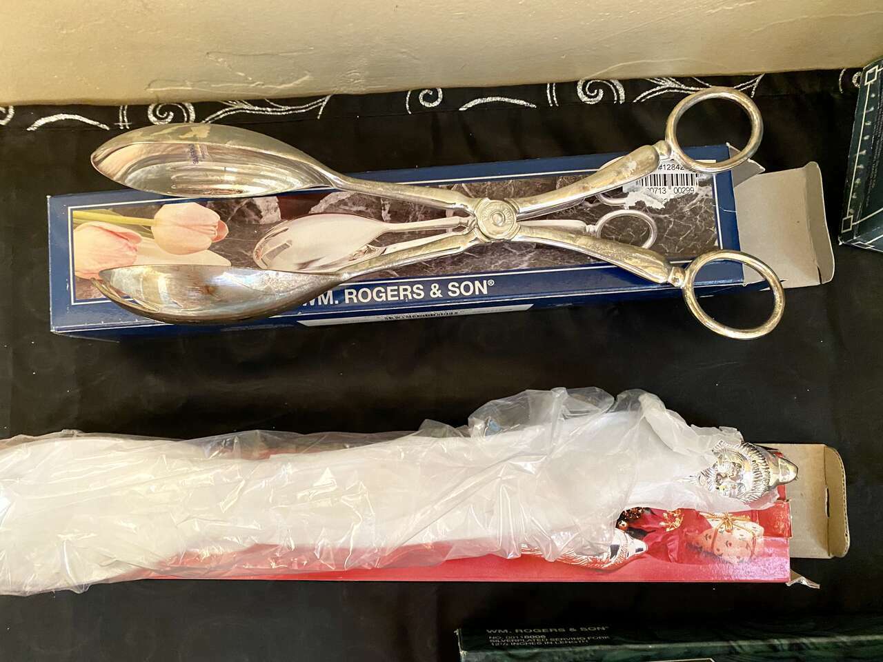Beautiful Silver Plated Utensils and A Large Oval Serving Basket - Most Never Used - PRICES VARY - C PIX. All are brand new and never used except for the last ornate spork which is tarnished. The others may have areas of tarnish just due to being in storage. The Santa spoon is in the most pristine condition and is stunning.
