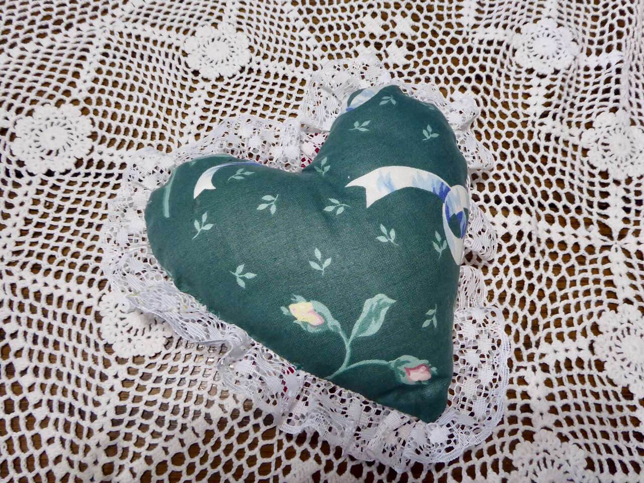**It Measures…**The whole pillow Measures… approx. 7 1/2 inches tall. There is an inch lace around the edges and the actual fabric part of the pillow measures…approx. 6 1/4 inches at the longest part. It is very well stuffed and is so very pretty and very nicely sewn.