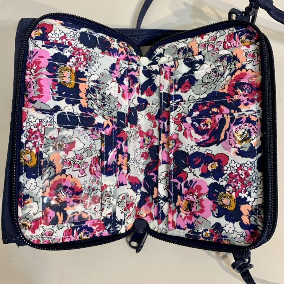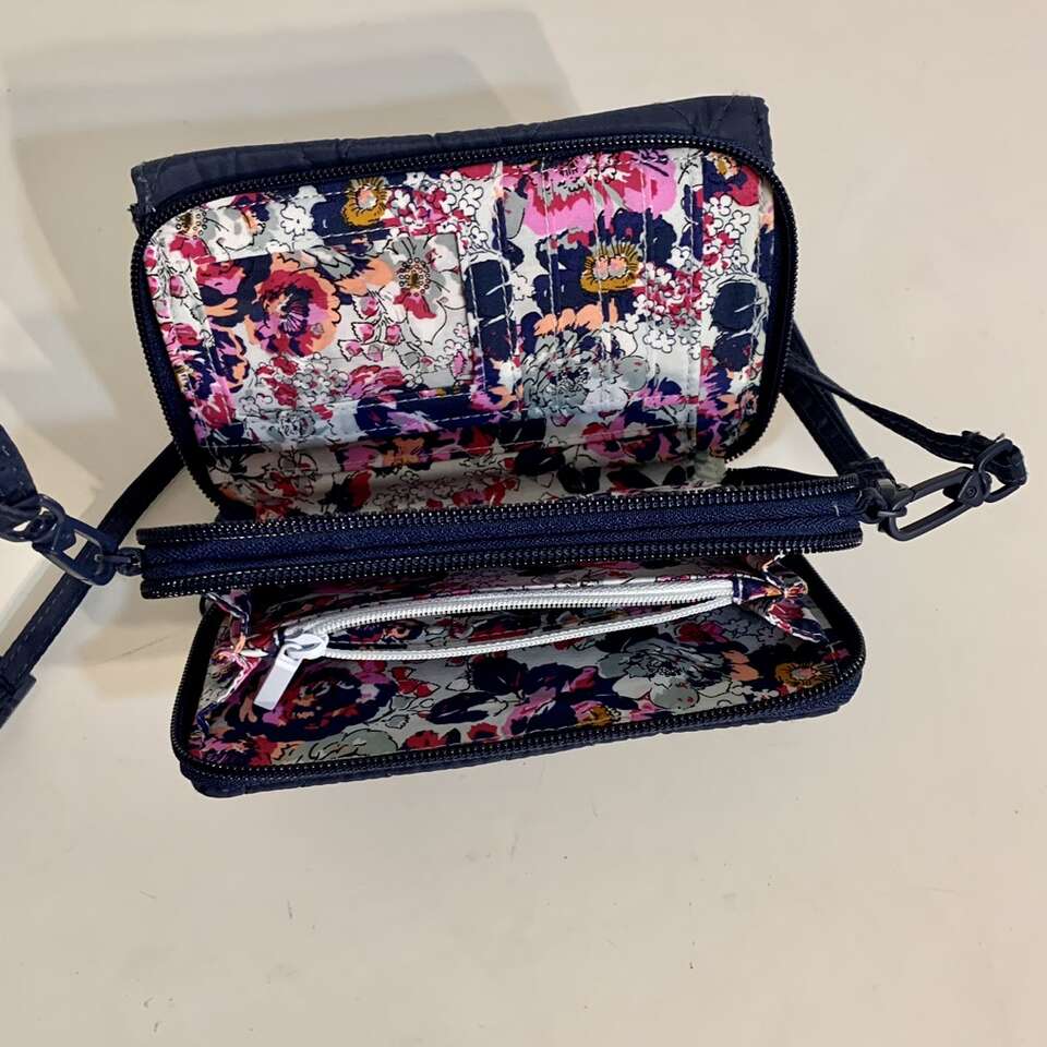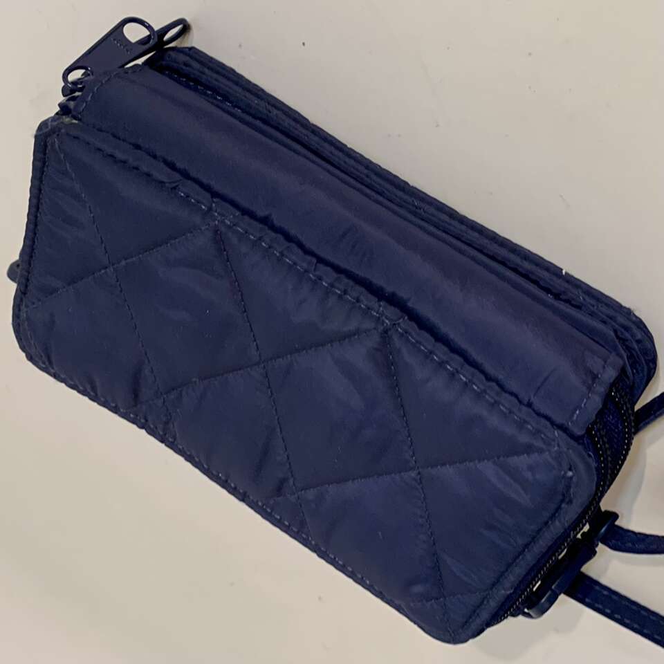 VenmoNew never used, All in One Crossbody bag converts to a wallet and a wristlet with the switch of a strap and built-in RFID technology (protects your credit & debit cards from data theft.) In water-repellent performance twill, also protected from unwelcome weather and surprise spills. Quilted, sleek, polyester Exterior features a phone slip pocket and a zip pocket, Interior features 10 card slips, four slip pockets, one bill pocket, one interior back compartment pocket and one ID window Zip and magnetic closures. See 7 pics above. Dimensions: 6.75 w x 3.75 h x 2.25 d with removable, adjustable strap and 6” wrist strap. Message me if you’re interested in purchasing it.