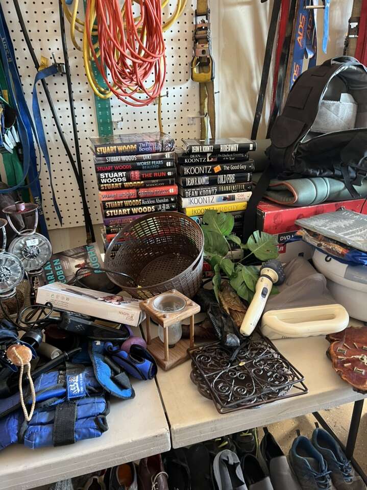 Men’s shoes size 11 men’s shirts size extra large 2XXL ladies clothing medium to large shoes 7 to 8 handbags duffel bag pelican case new stereo, ski stuff lots of clothes, handweights, ankle weights, couch, pad massager, hand, massager’s, foot, bath, neck, massager, shower chair, walkers, canes, and much much more call to see located in Kaysville. This is not a yard sale. This is Call in by.