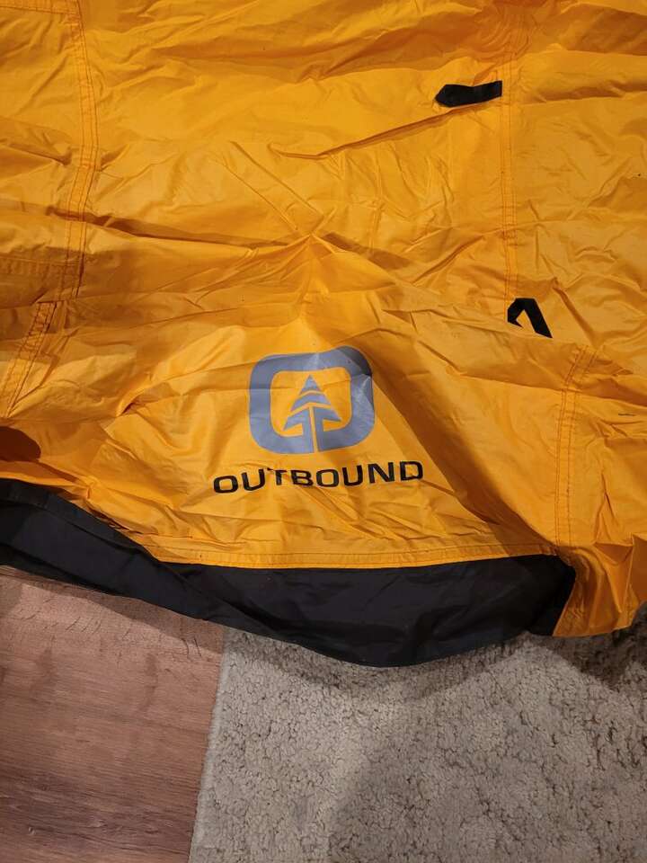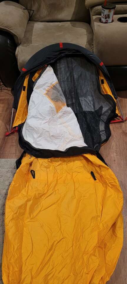 Great shape,no rips, tears,stains, or wear areas. Waterproof/light weight. used it one time bikepacking in Moab and stayed warm in the cool desert spring nights. That was 2021 didn't use it this year. Hopefully someone can put it to good use.