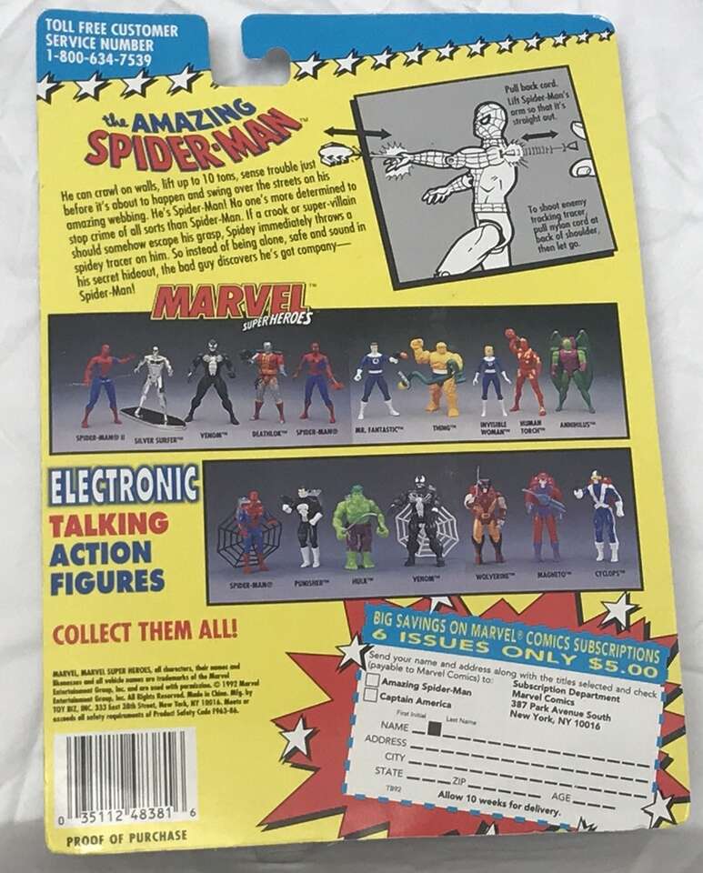 Spiderman Action Figure With Enemy Tracking Tracer by Toy Biz 1992. This is new old stock. It is in excellent condition and unopened on original backing card. The figure has been kept in my personal inventory since purchase in 1992. Local meet up. Venmo to hold this figure.