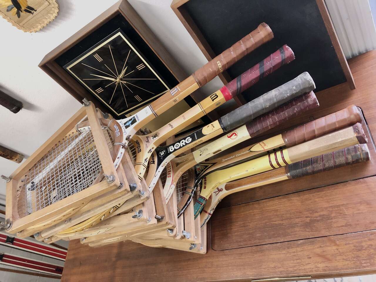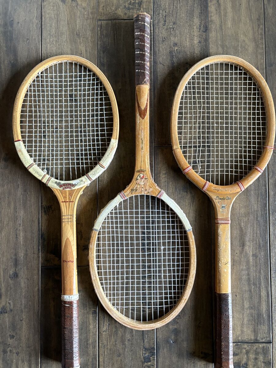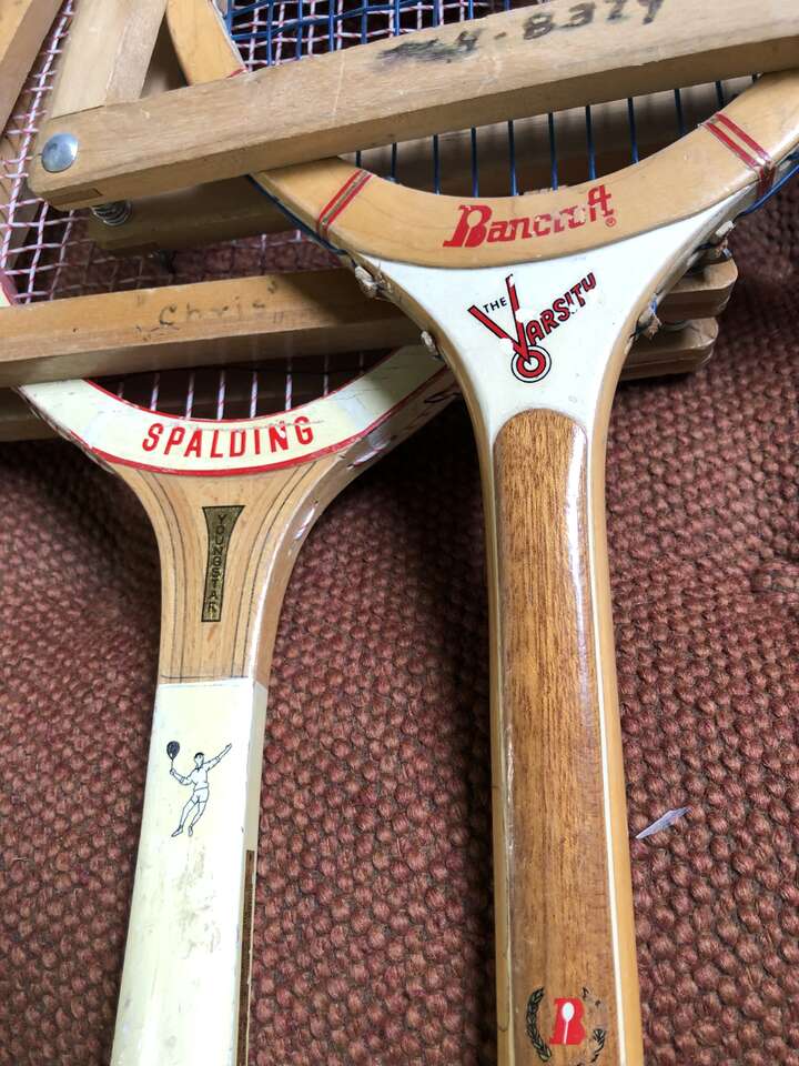 These vintage wooden tennis rackets are an awesome wall decoration!! Perfect for a game room, office, wherever you'd like a cool vintage vibe. a good percentage have the wooden storage cover in them. . Most are $20 per racket. The wooden racket protectors are usually around $8 each.