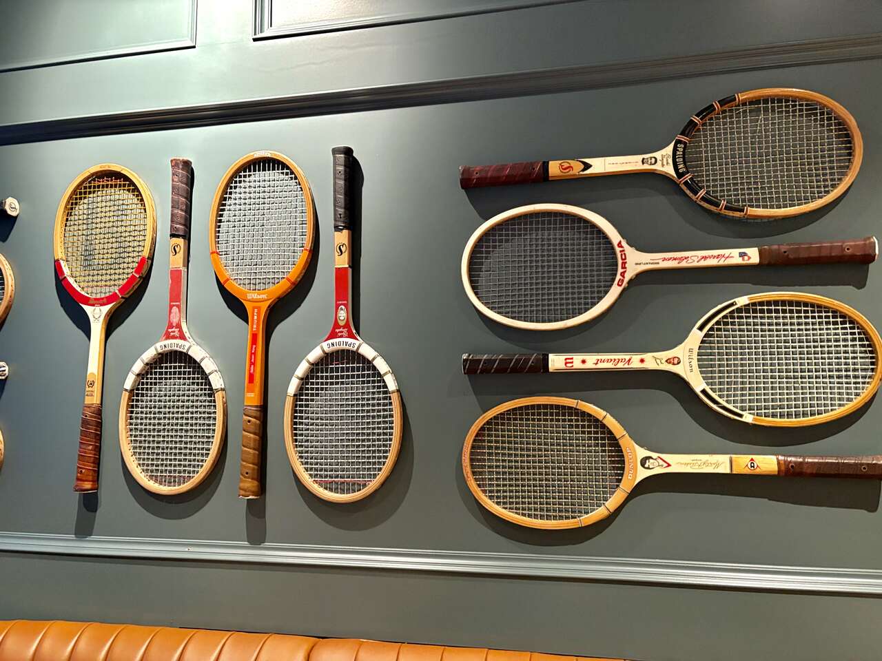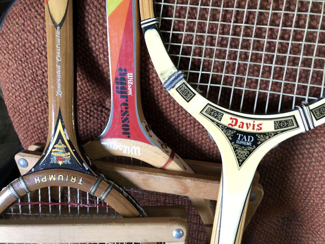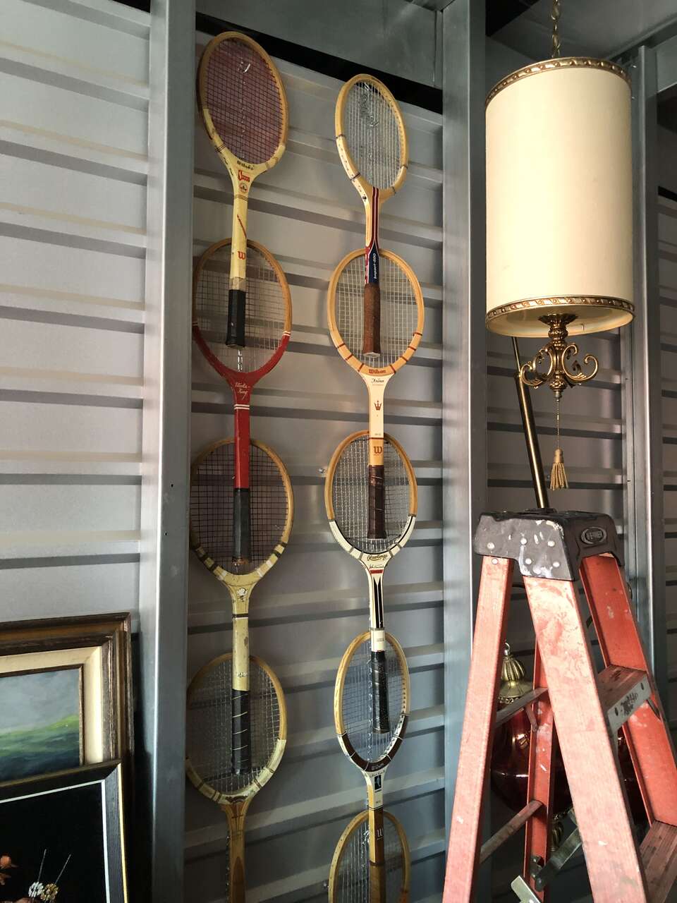 These vintage wooden tennis rackets are an awesome wall decoration!! Perfect for a game room, office, wherever you'd like a cool vintage vibe. a good percentage have the wooden storage cover in them. . Most are $20 per racket. The wooden racket protectors are usually around $8 each.