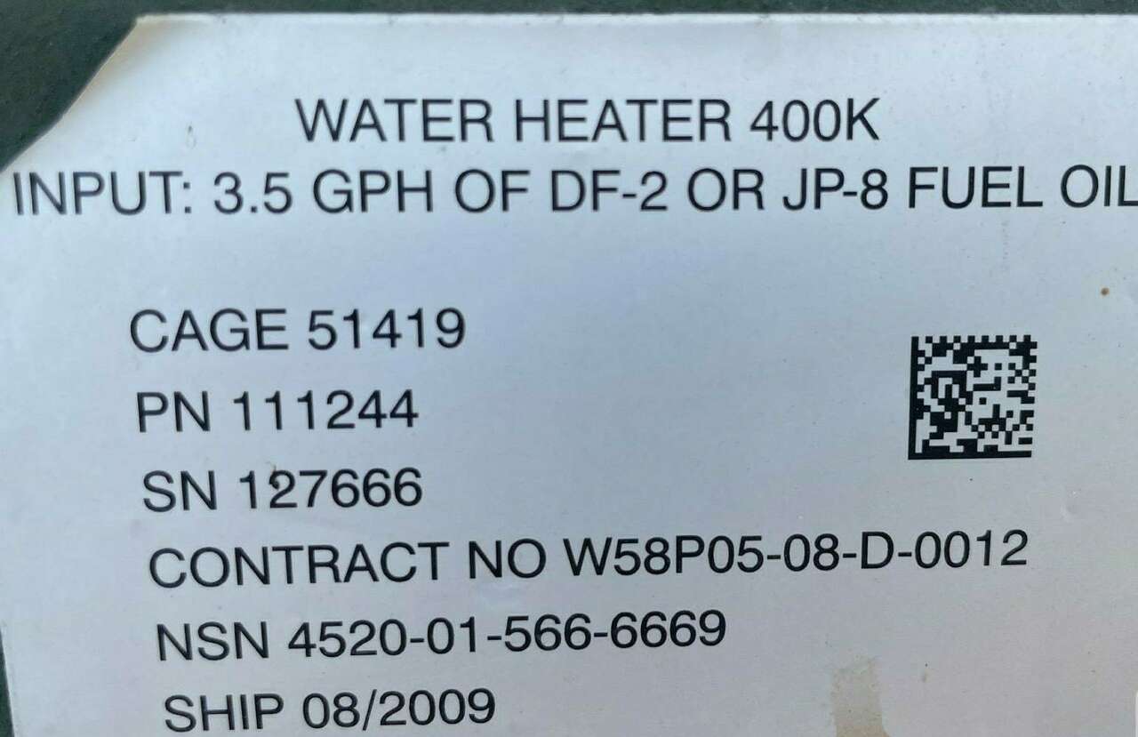 PVI AWH-400 Heavy-duty Diesel Liquid Fuel Hot Water Heater apartment hotel construction Concrete Cement Building Jobsite Worksite farm Ranch Industrial Commercial Boiler Mobile Portable 400,000 BTU 3.5 GPH Fuel Consumption DF-2 Fuel JP-8 Diesel Kerosene Fuel commercial water heater high-recovery water heater industrial heating equipment water storage energy efficiency water heating system surplus equipment used water heater inspection report water heater specs specification military installation operations remote field operation industrial facilities require large amounts of hot water manufacturing plant high recovery rate efficiency in heating large volumes of water quickly large commercial buildings hotel hospital large office complex construction site temporary setup portable semi-permanent structure provide a reliable source on-site remote location facility area emergency service fire station rescue stations disaster relief efforts traditional utilities are compromised unavailable education institutions large school university extensive facilities dormitory gymnasium cafeteria correctional facility prison detention center durable efficient meeting hot water needs for large population agricultural operation large farm ag processing unit cleaning processing livestock crop-related activity on demand flexible fuel high-demand please serious inquiries only.