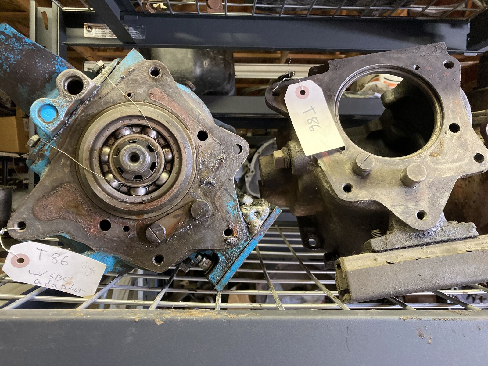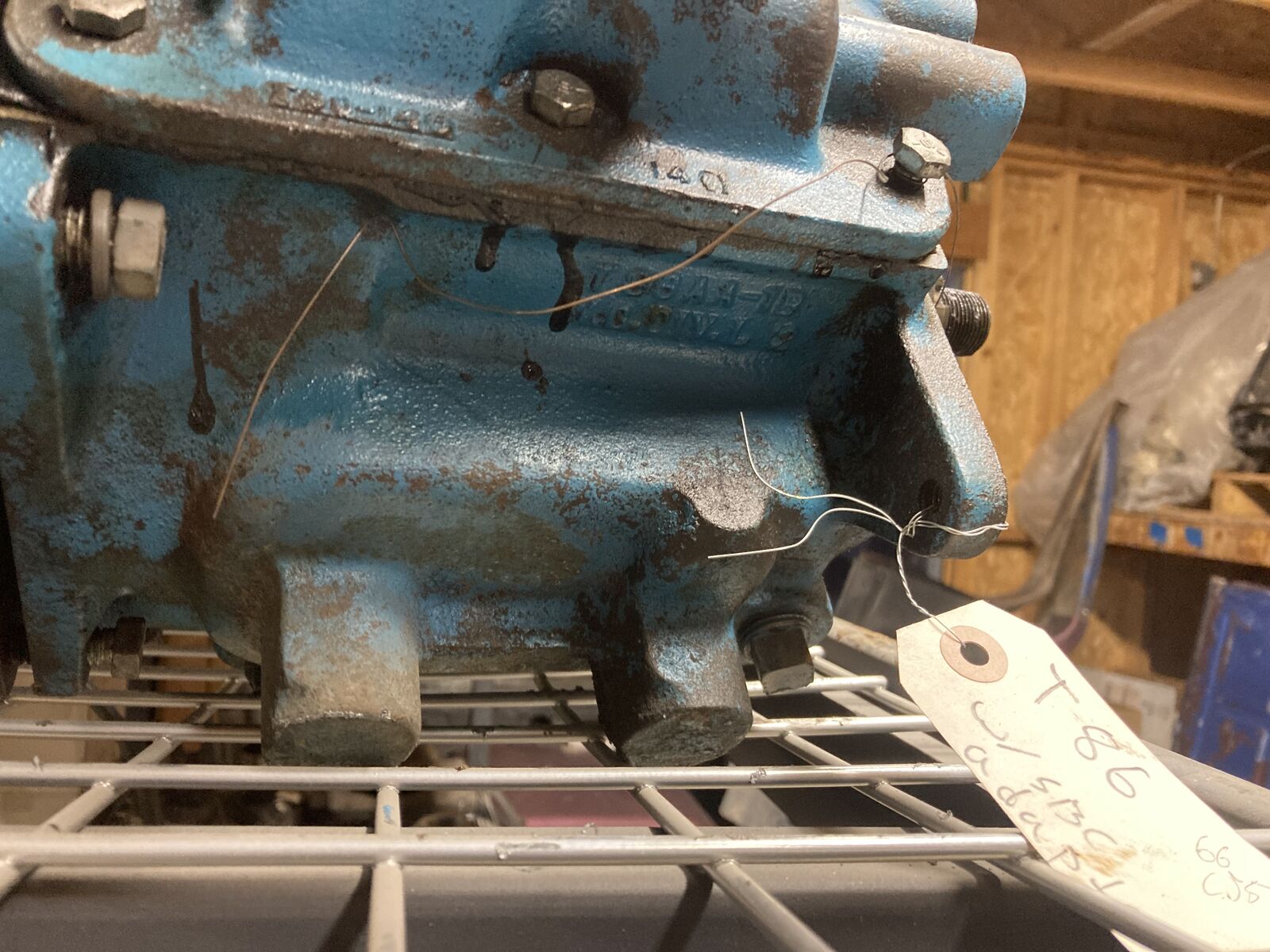 NOTE: Sale includes a replacement case due to a broken mounting tab. Core charge on a rebuildable T86 is $700. The correct Buick 225 cast iron bellhousing is also available.