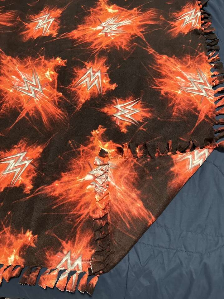 All new single sided hand tied blanket. About 54 inches long by About 40 inches wide. Smoke/Pet free home.