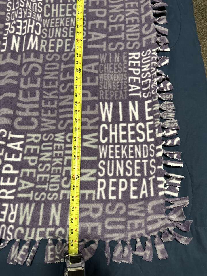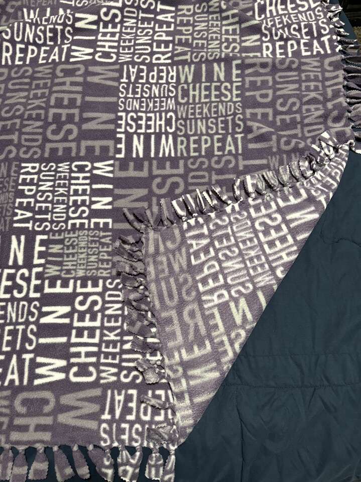 All new single sided hand tied blanket. About 54 inches long by About 54 inches wide. Smoke/Pet free home.