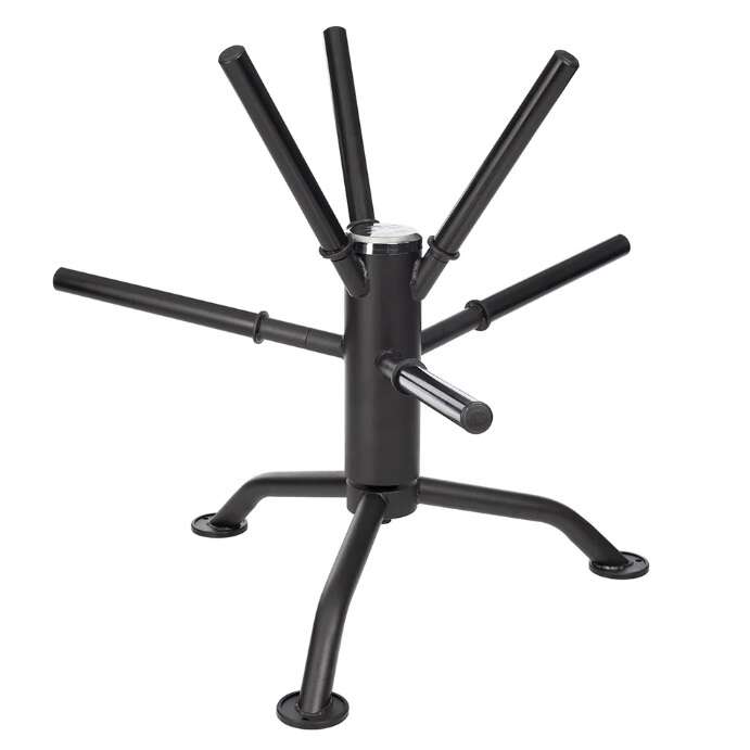"Our plate racks range from the standard vertical bar rack design to the exquisitely-engineered Fusion Spin-Rack. This 2-level rack works with all styles of olympic plates and can fit in a corner or up against a wall, as both levels fully rotate 360 degrees. This is absolutely the coolest olympic plate rack anywhere. "
