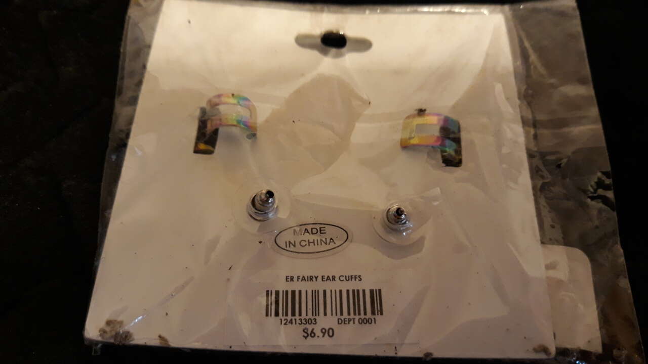 VenmoNew, Butterfly Earrings/Ear Cuffs. These have a post earring with a cuff above, to hold it in the right place. Pearlescent wings & sparklies on the body of the butterfly. New in its original packaging.