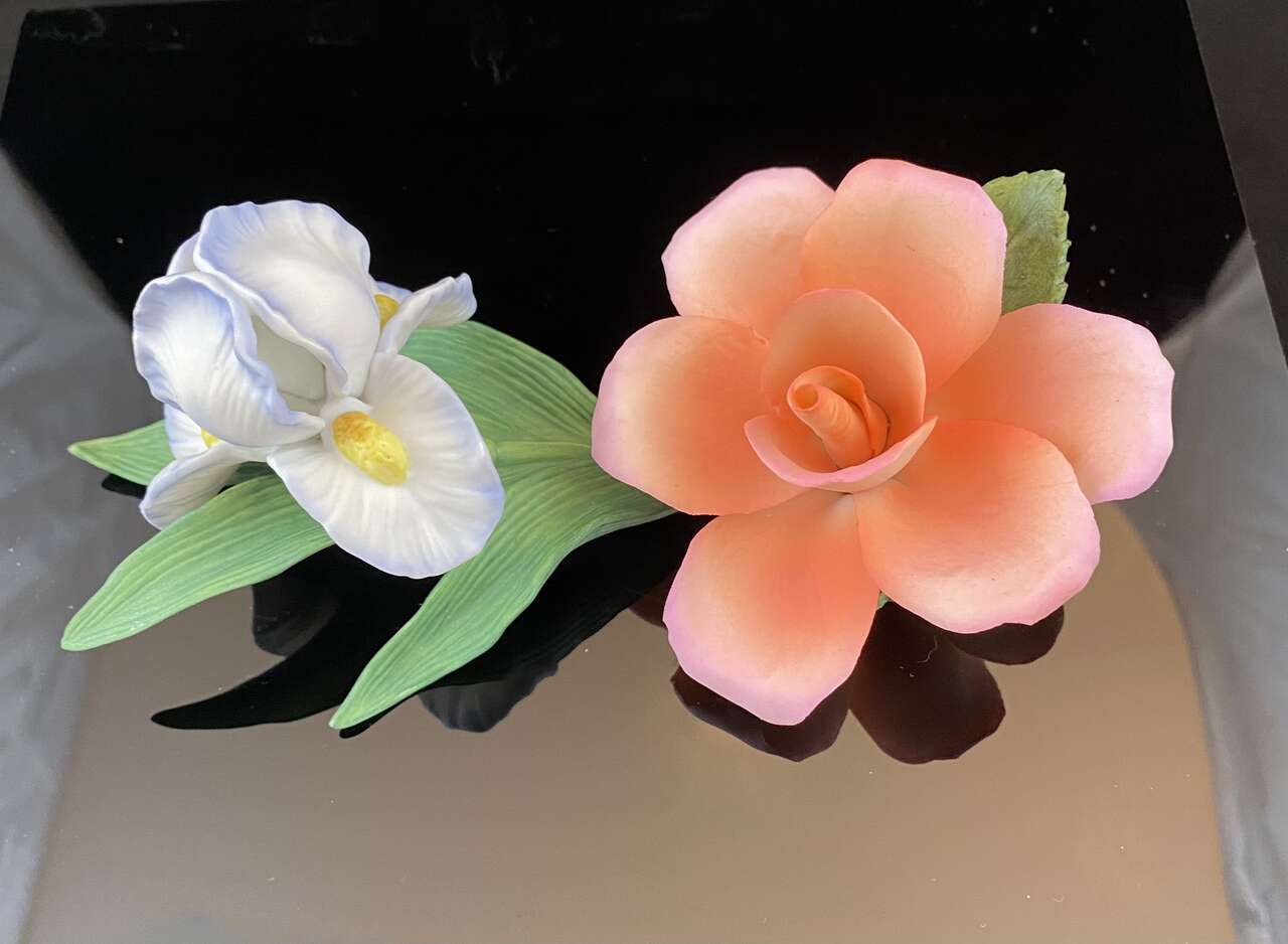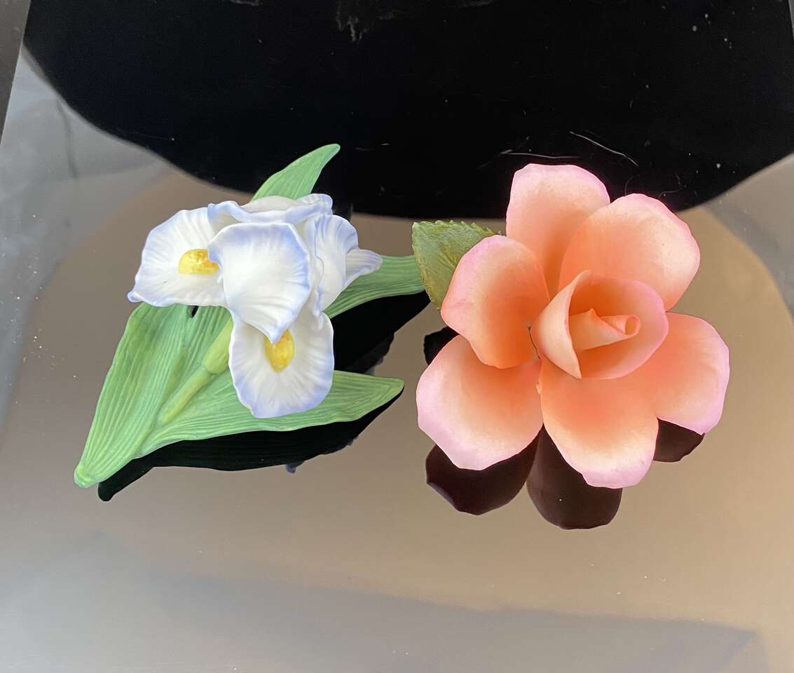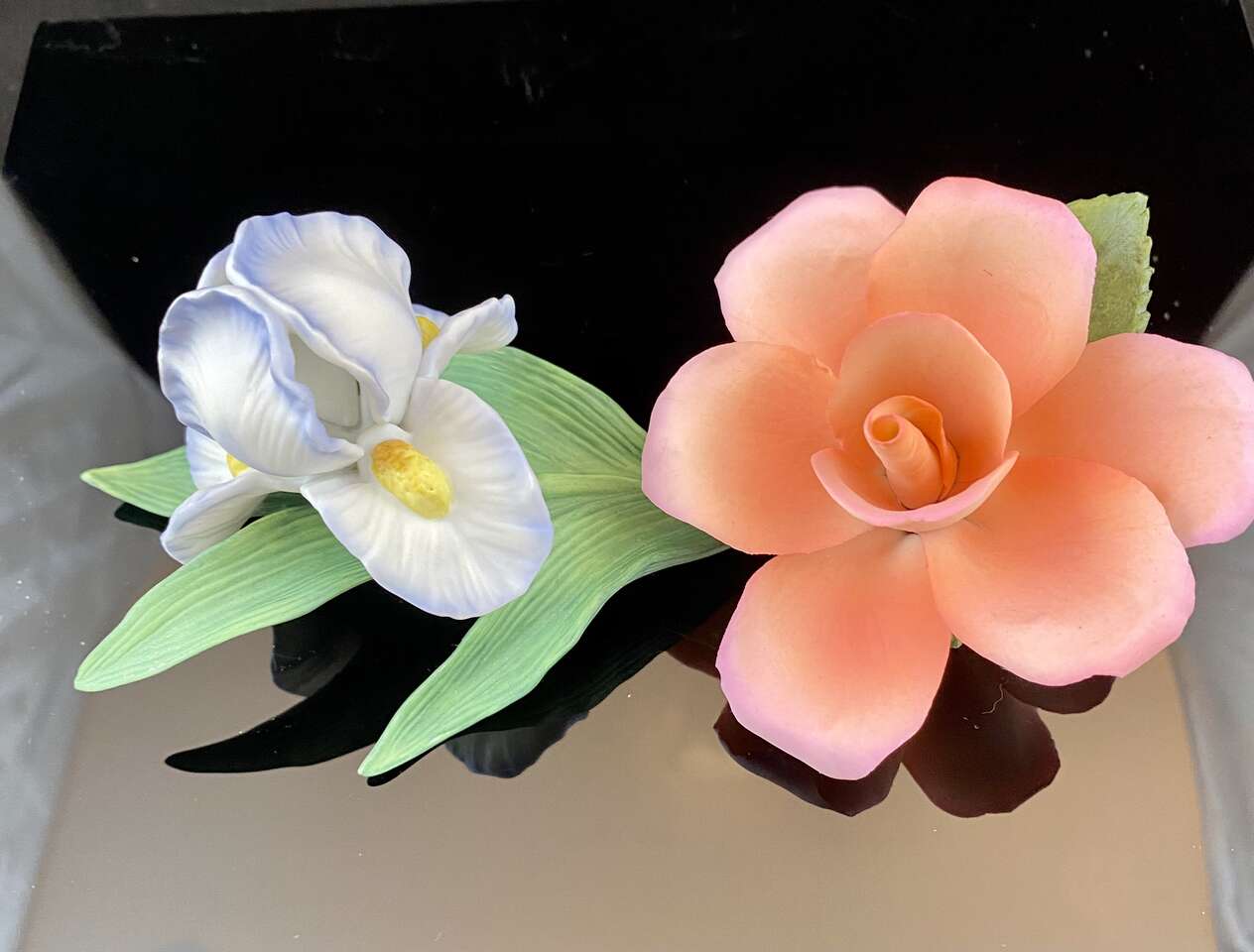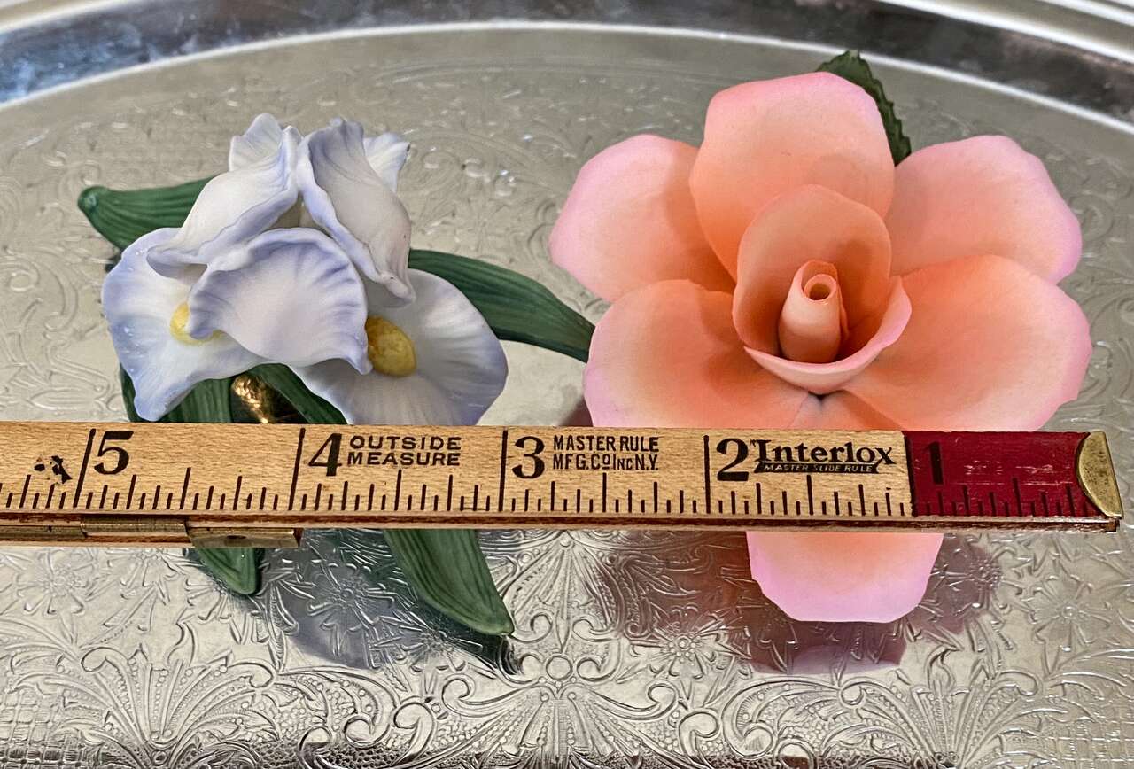 Vintage Collectable PORCELAIN Napoleon Capodimonte Flower - Petite Rose + HOMECO Delicate Iris -C PIX. Even through these two are very different in value they look amazing together. See the comparables for reference of values.