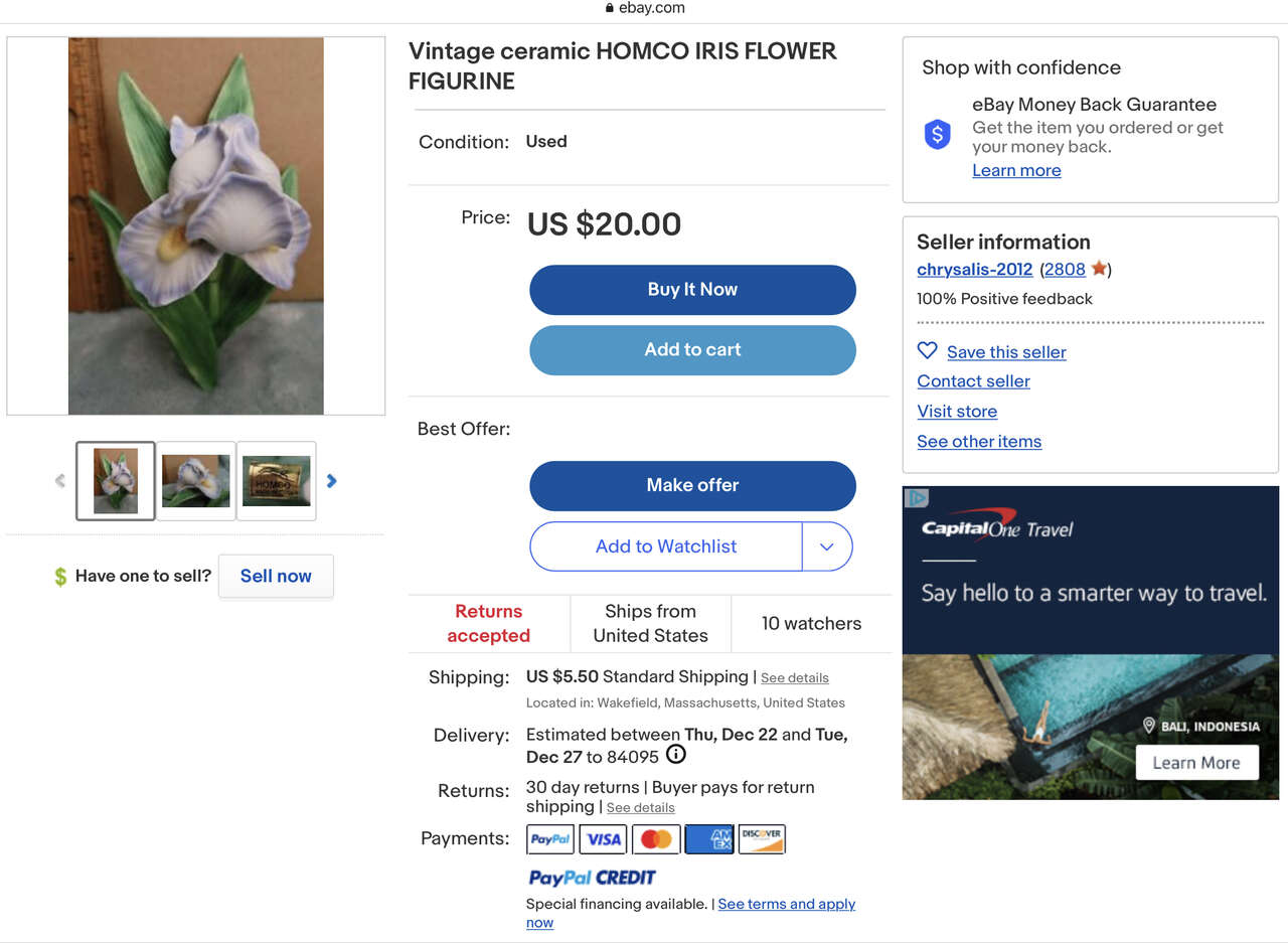 Items are from a smoke free, pet free home. Most often anything I have listed at $10 is the final price and will not go lower. Prices are subject to change, sometimes higher, sometimes lower.