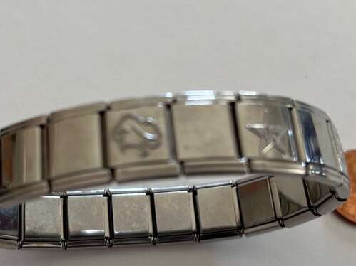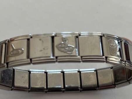 Pampered Chef silver colored charm bracelet. Links can be taken out and switched. This bracelet has 5 charms, please see photos.