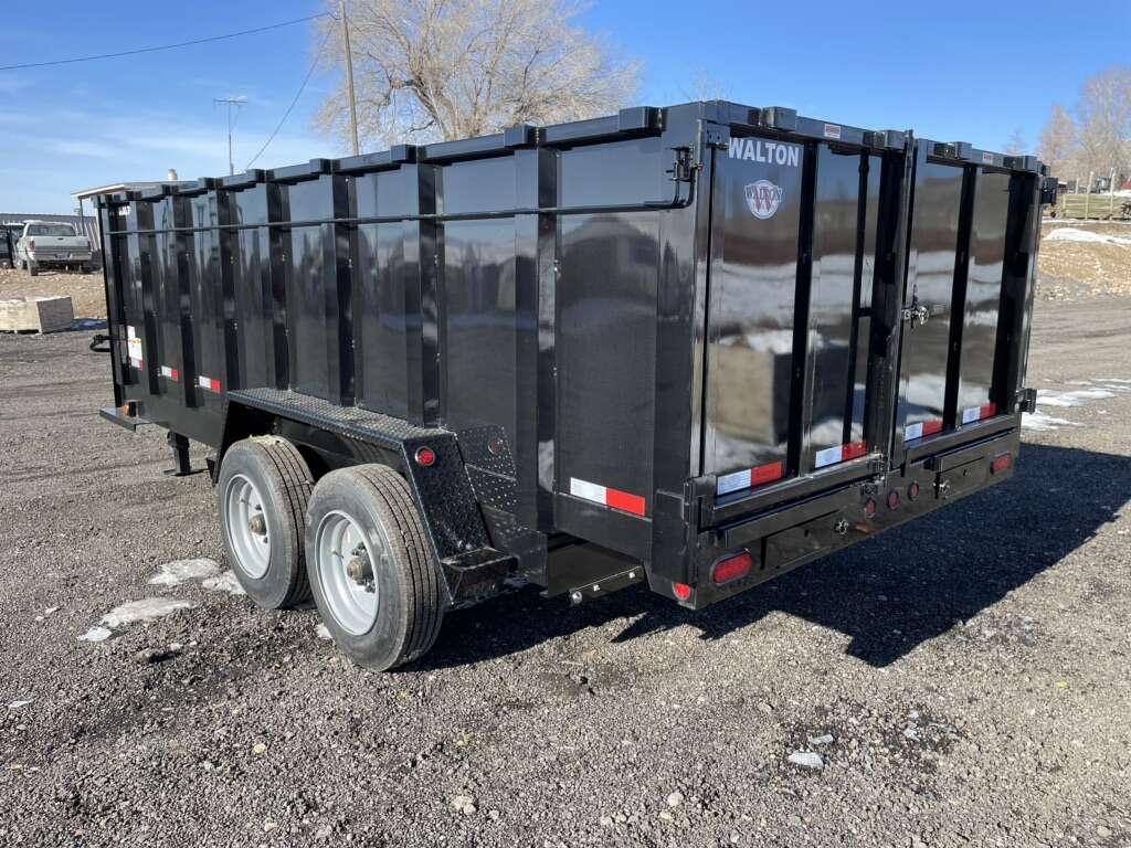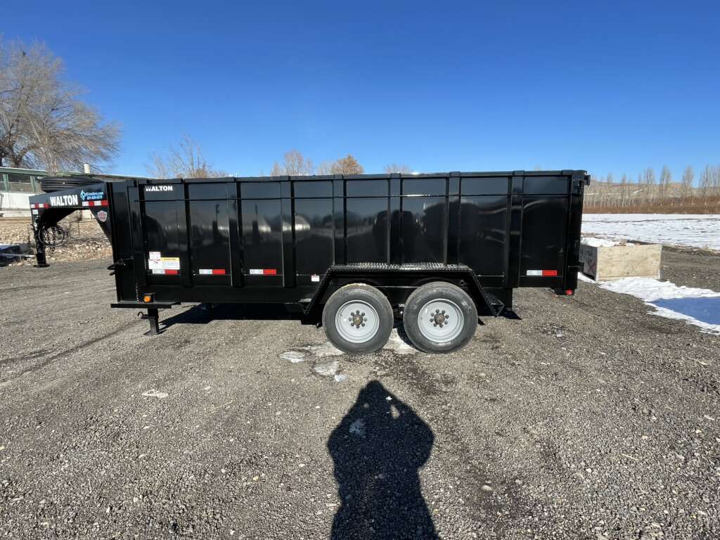 This is one stout Walton dumpt trailer with an upgraded heavy duty scissor lift. GVWR / GAWR: 16,000 Lbs Mainframe: 8 Channel Coupler: Gooseneck Deck: 10 Gauge Smooth Sheet Wall Height: 44 Hoist: Scissor Hoist / 45 Degree Dump Angle Axles: Dexter Tandem 8k Slipper Springs Tires: 215/75R17.5 H on 8-Hole Wheel Brakes: Self Adjusting Electric Landing Gear: 12K Spring Loaded Drop-Foot Jack Tie Downs: Stake Pockets and Tarp Rod Spare Mount: Mounted on A-Frame Pump Box: Pump Box With Lid Cross Members: 3 Channel Lights: DOT Approved LED Sealed Beam With Rubber Grommet Wiring: DOT Modular Wiring Harness Safety: Bed Prop, Reflective Tape, Safety Chains with Hooks, Break-Away Switch with Battery Finish: Black Powder Coat Finish Warranty: One Year Limited Structure