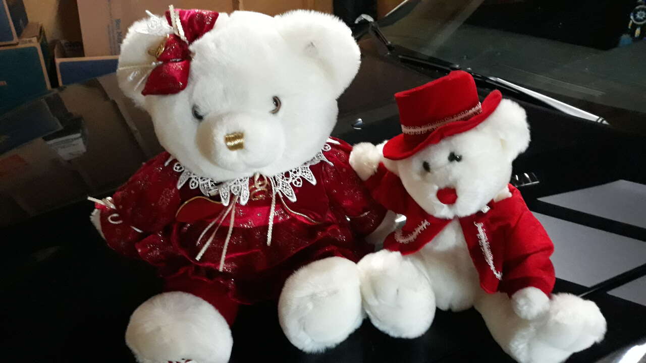Bear Plushes. Most are $1 each or $5 for the box. Large white Bear is $3. Need gone ASAP. OBO. No smoke No tears.