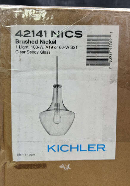 KICHLER Everly 15.25" 1 Light Bell Pendant Clear Seeded Glass BRUSHED NICKEL