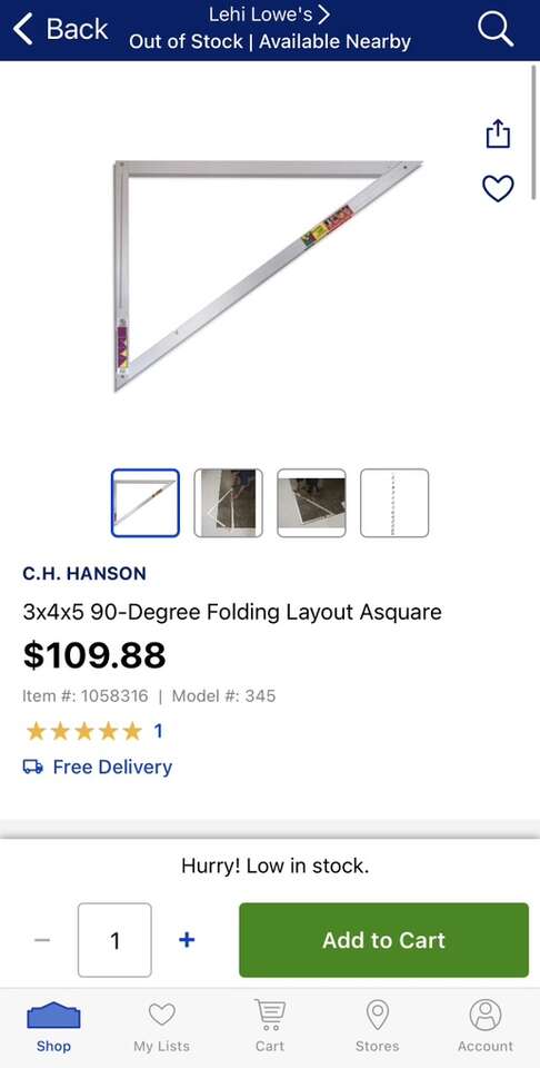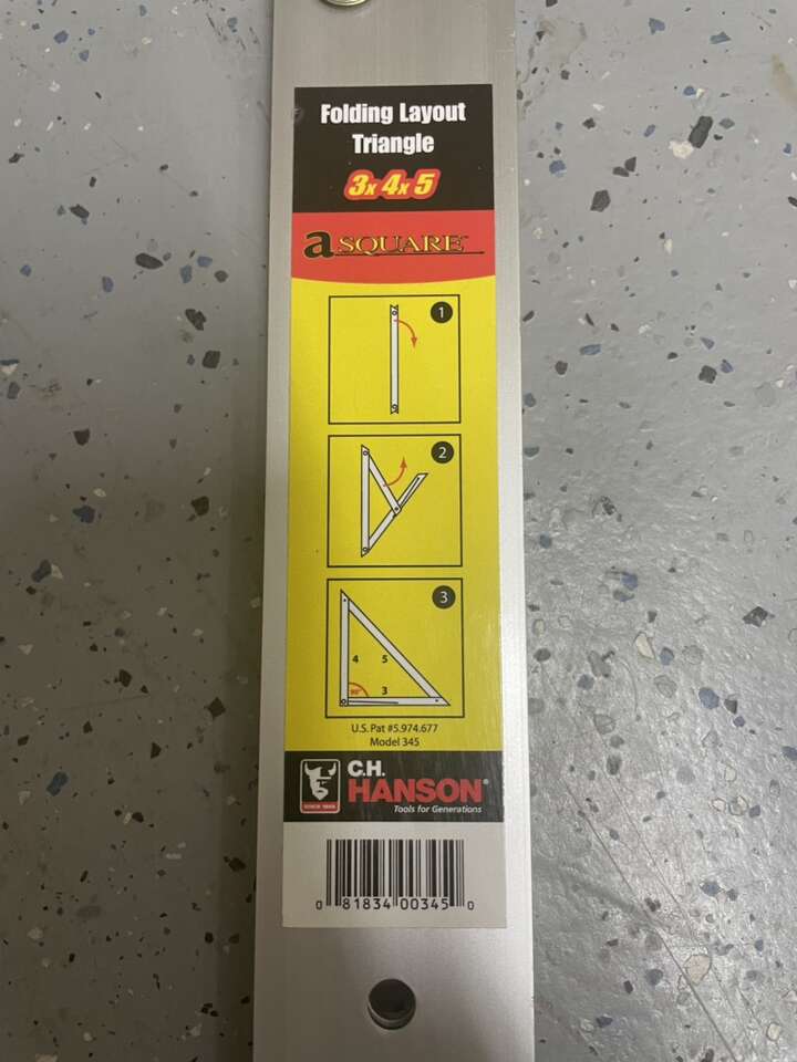Description- 90° Folding lay out A-square 3’ x 4’ x 5’. Perfect for woodworking or tile projects, See photos for more product information and specifications.