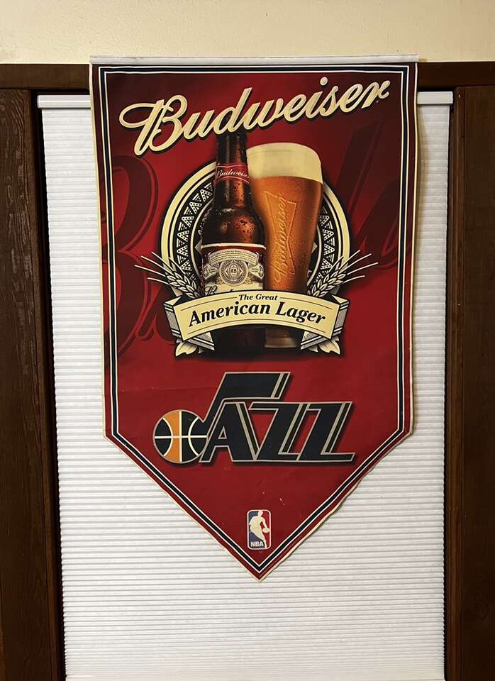 This was gifted to me years ago and I’m deciding to part with it. It’s in fantastic shape and was told it was from the old stadium and used in a bar but have no idea if that’s true or not. At any rate, it’s a legit banner and is large. Like 5+ feet long and about 3.5 feet wide (rough idea of measurements). Would be awesome for a home bar or man cave, or a great Christmas gift for that die hard jazz fan. It’s double sided so it’s got the same image on both sides.