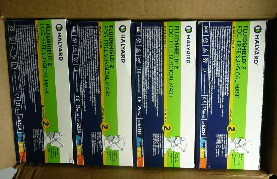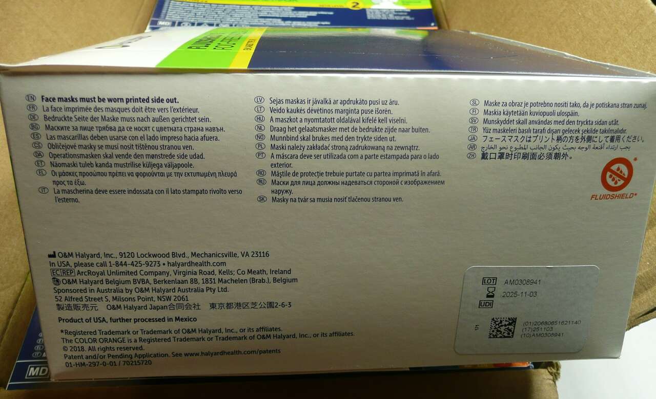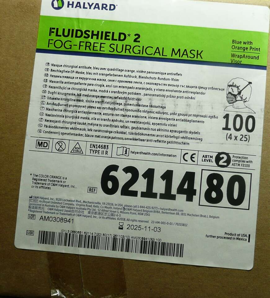 Halyard 62114 Fluidshield 2 Fog Free Blue with Orange print Surgical Masks with Wraparound Visor