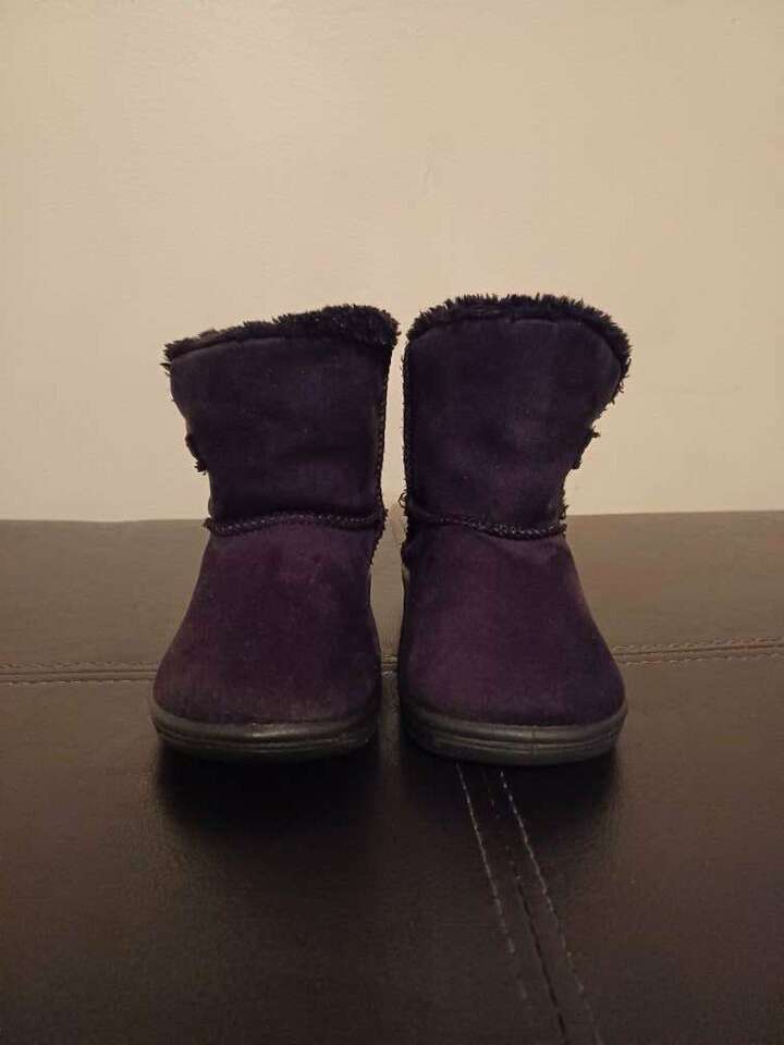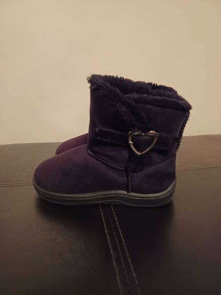 Girls black boots with heart shaped buckle. Size 6 in toddlers. They are darker black in person.