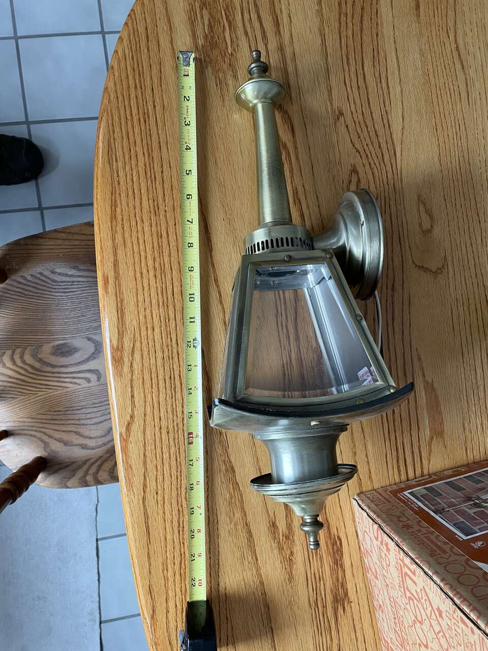 Nice brass lamp. New in the box. 21 inches tall and 8 inches deep.