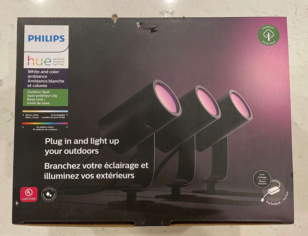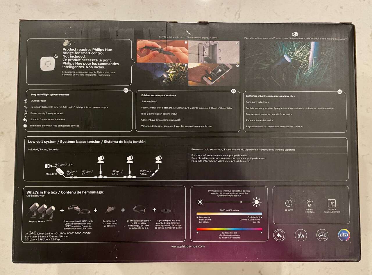 Up for grabs is a NEW & SEALED Philips Hue Lily Outdoor Spotlight Base Kit (3-pack).