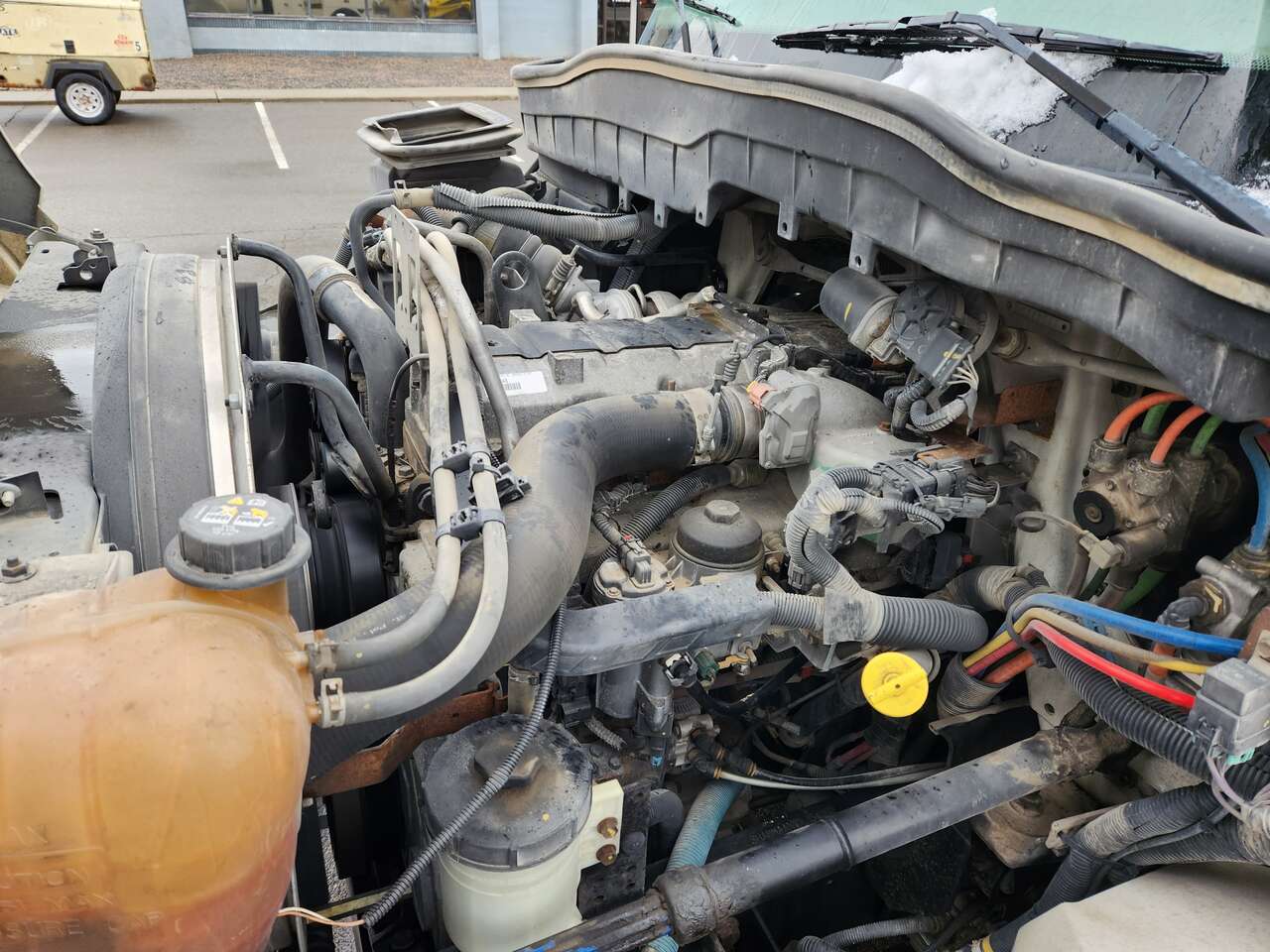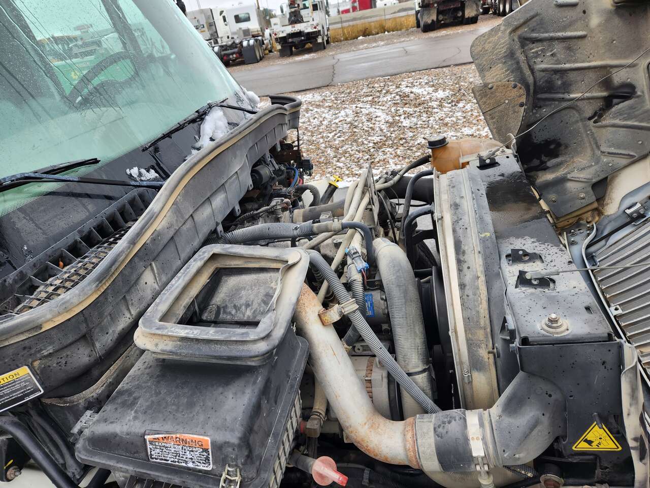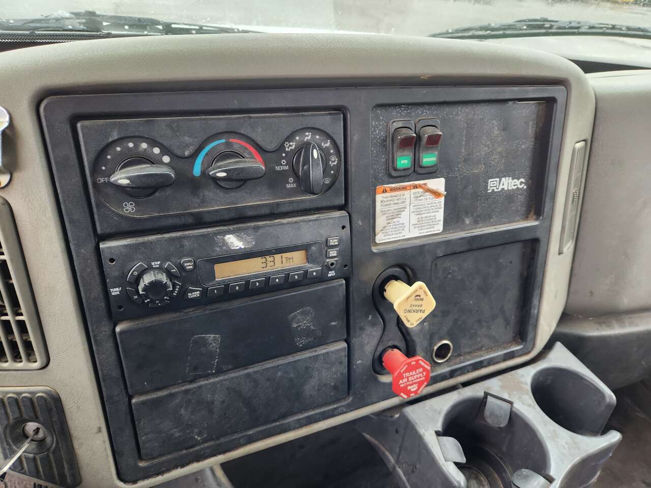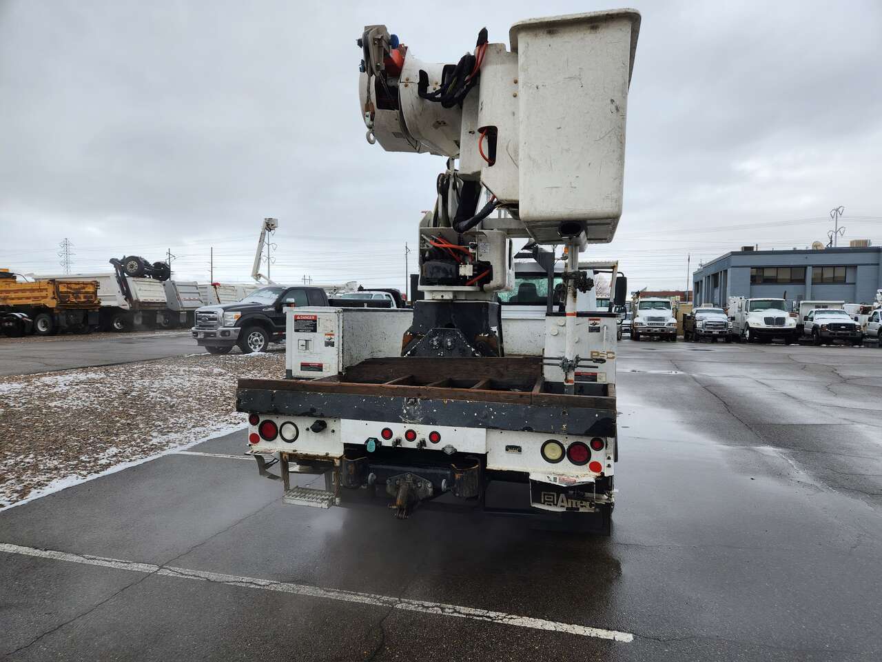 Altec AM755MH, 55' Platform Ht, 60' Working Height, Material Handling Jib, International MaxxForce 6 Cylinder Diesel Engine, 230 HP, 94k Miles, 9512 Engine hrs, Allison Automatic Transmission, 13000 lb Front Axle, 20000 lb Rears, 33000 lb GVWR, 11R22.5, Spring Suspension, 188 in Wheelbase, PTO, 700 lb Capacity, Rear Mounted, Insulated Two-Person Articulated Boom, Utility Body, Boom Tip Mounted Winch, Out and Down Outriggers, Rear Outriggers, 14 ft 6 in x 94 in Bed, Pintle Hitch