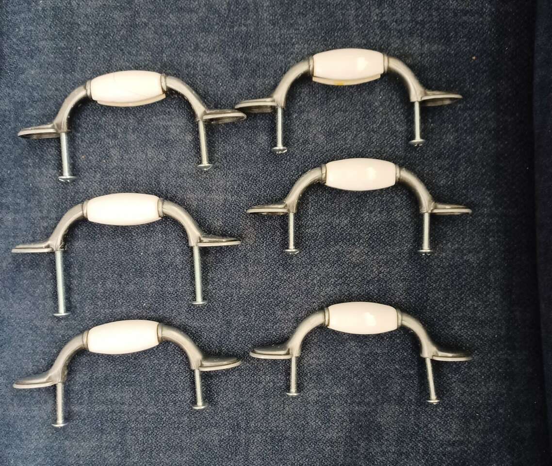 Satin Nickel and Porcelain 3 inch center pull 5inch overall width